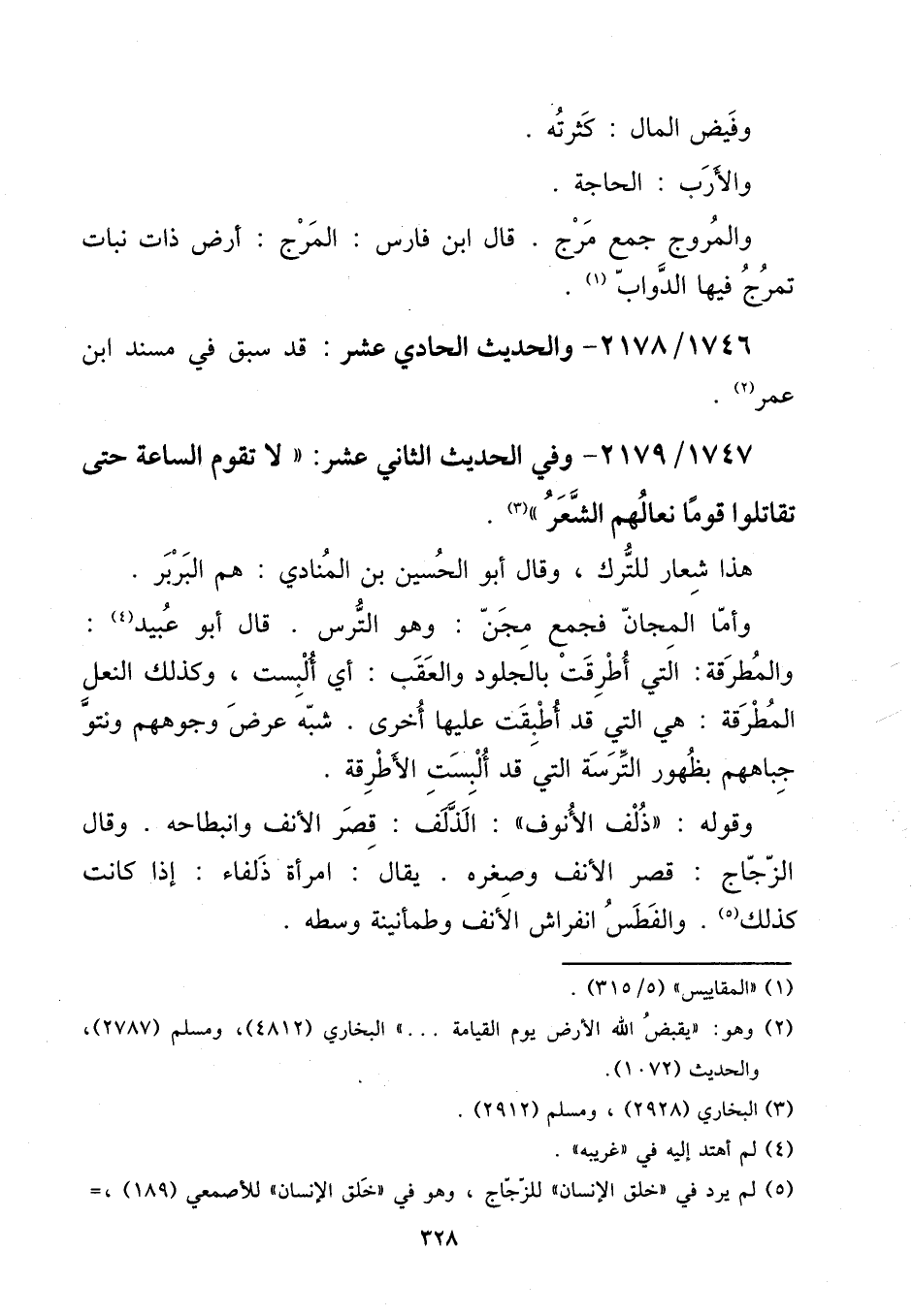 1747 - / 2179 - وَفِي الحَدِيث الثَّانِي عشر: ((لَا تقوم السَّاعَة حَتَّى تقاتلوا قوما نعَالهمْ الشّعْر)) .