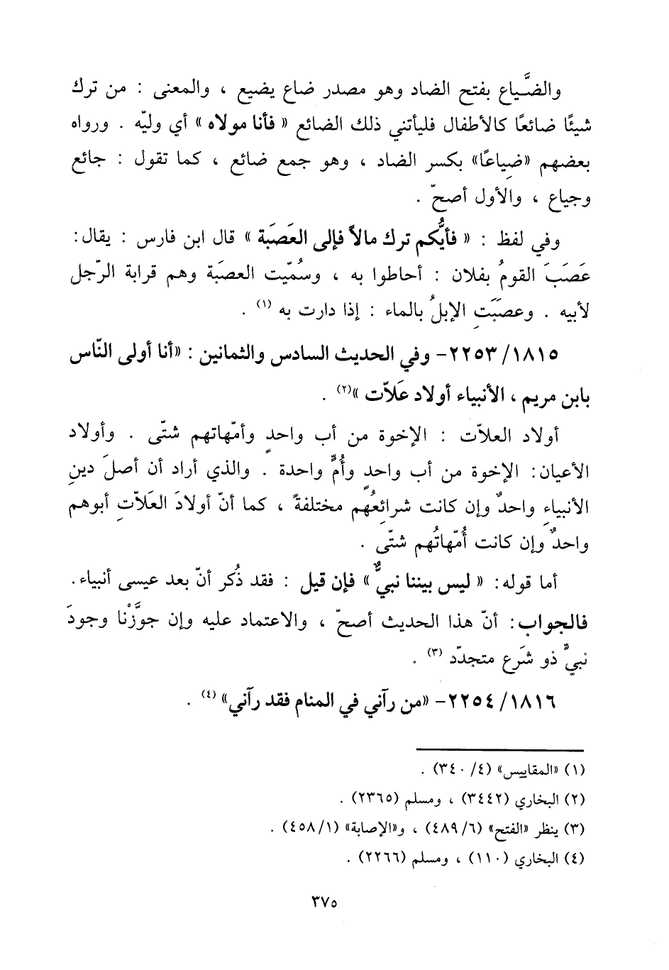 أَوْلَاد العلات: الْإِخْوَة من أَب وَاحِد وأمهاتهم شَتَّى. وَأَوْلَاد الْأَعْيَان: الْإِخْوَة من أَب وَاحِد وَأم وَاحِدَة. وَالَّذِي أَرَادَ أَن أصل دين الْأَنْبِيَاء وَاحِد وَإِن كَانَت شرائعهم مُخْتَلفَة، كَمَا أَن أَوْلَاد العلات أبوهم وَاحِد وَإِن كَانَت أمهاتهم شَتَّى.