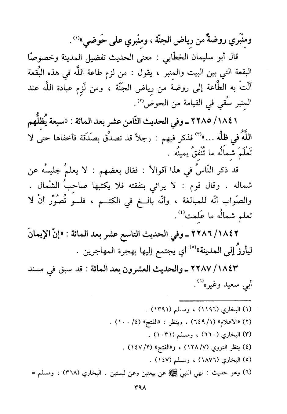 1841 - / 2285 - وَفِي الحَدِيث الثَّامِن عشر بعد الْمِائَة: ((سَبْعَة يظلهم الله فِي ظله)) فَذكر فيهم: رجلا قد تصدق بِصَدقَة فأخفاها حَتَّى لَا تعلم شِمَاله مَا تنْفق يَمِينه.