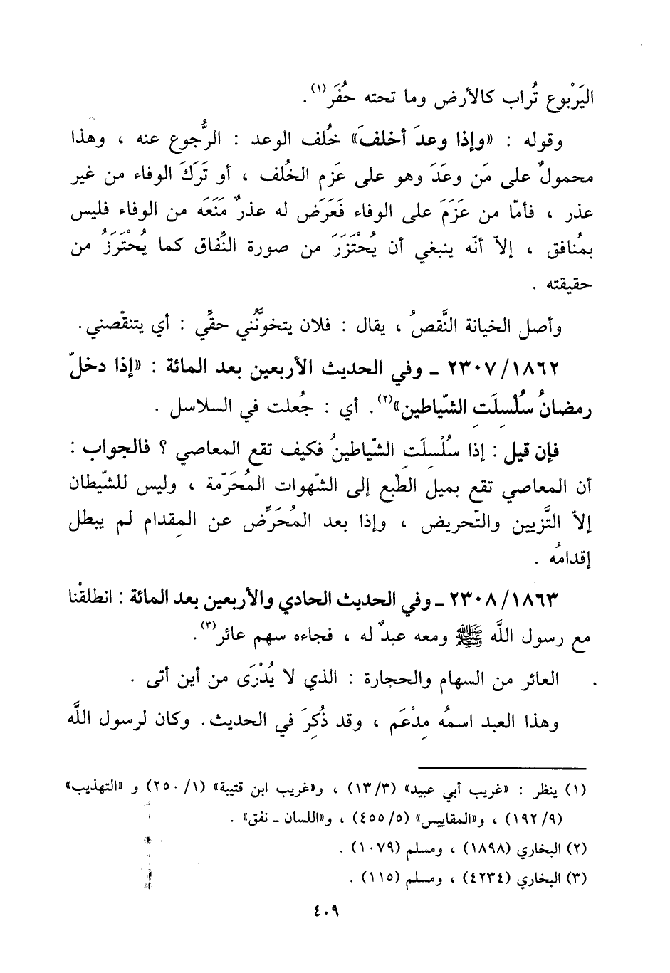 1863 - / 2308 - وَفِي الحَدِيث الْحَادِي وَالْأَرْبَعِينَ بعد الْمِائَة: انطلقنا مَعَ رَسُول الله صلى الله عَلَيْهِ وَسلم وَمَعَهُ عبد لَهُ، فَجَاءَهُ سهم عائر.