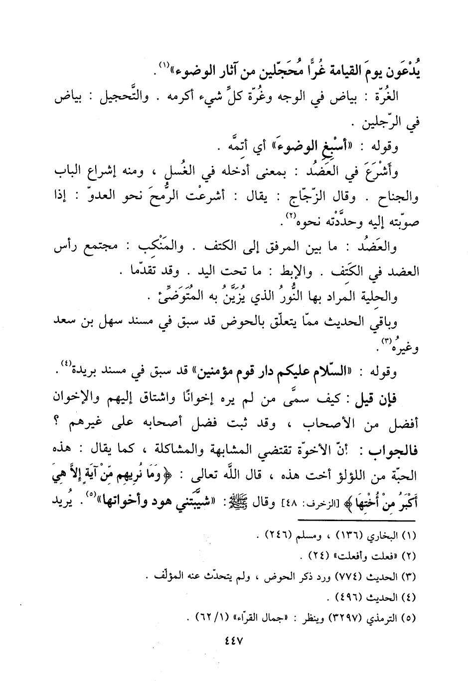 يدعونَ يَوْم الْقِيَامَة غرا محجلين من آثَار الْوضُوء)) .