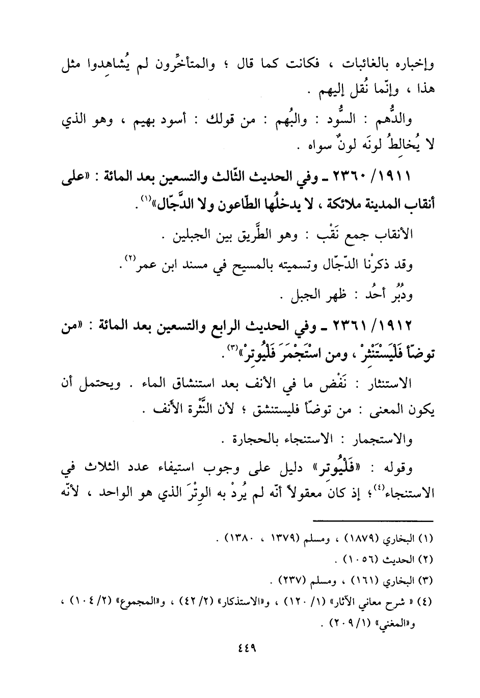 1911 - / 2360 - وَفِي الحَدِيث الثَّالِث وَالتسْعين بعد الْمِائَة: ((على أنقاب الْمَدِينَة مَلَائِكَة، لَا يدخلهَا الطَّاعُون وَلَا الدَّجَّال)) .