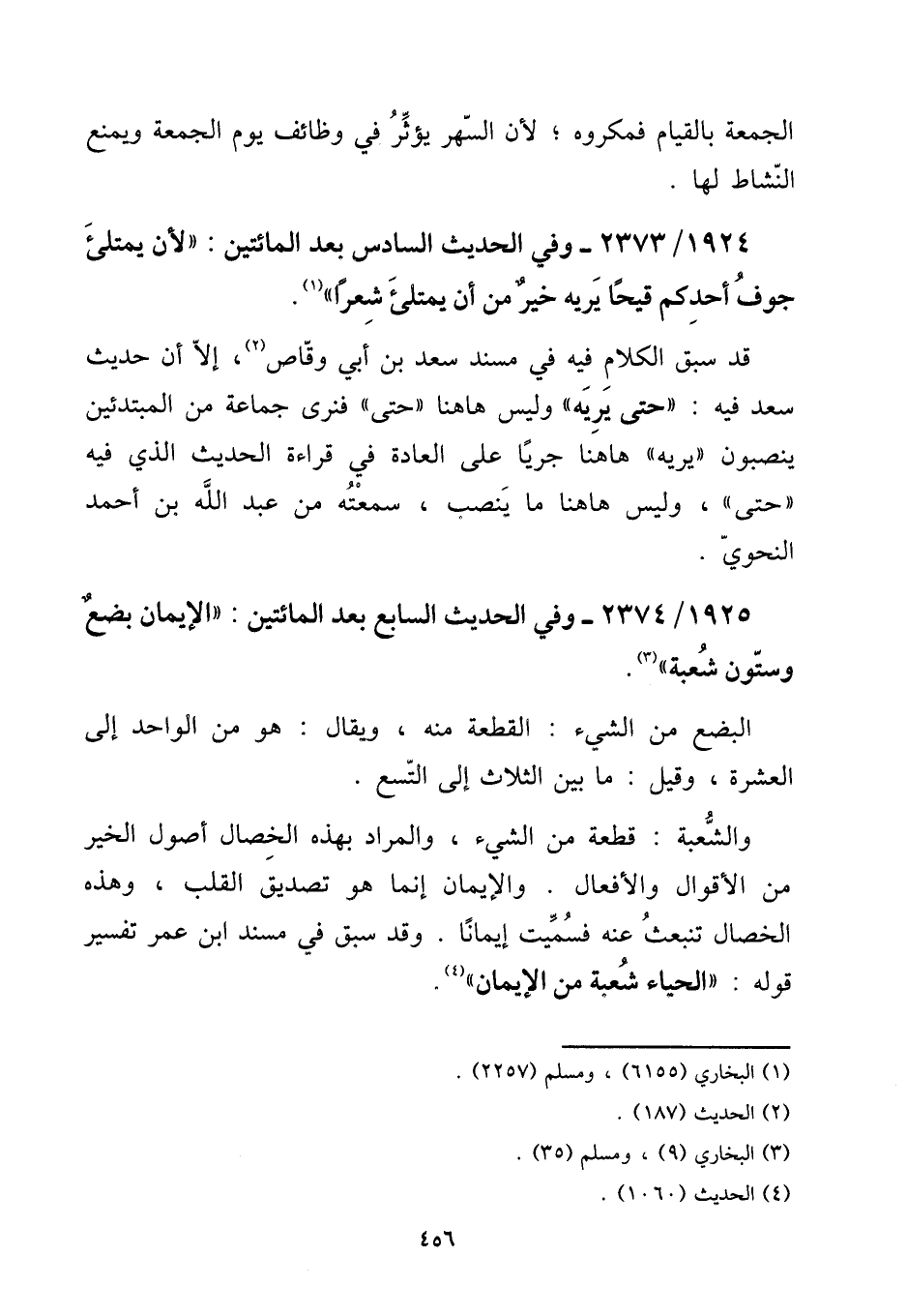 1925 - / 2374 - وَفِي الحَدِيث السَّابِع بعد الْمِائَتَيْنِ: ((الْإِيمَان بضع وَسِتُّونَ شُعْبَة)) .