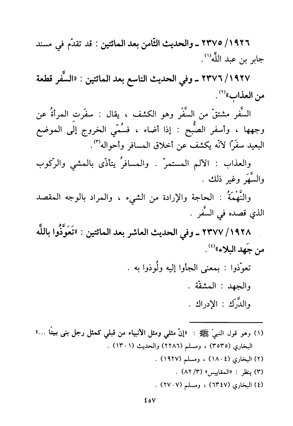 1927 - / 2376 - وَفِي الحَدِيث التَّاسِع بعد الْمِائَتَيْنِ: ((السّفر قِطْعَة من الْعَذَاب)) .