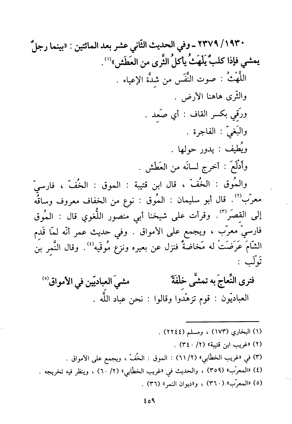 1930 - / 2379 - وَفِي الحَدِيث الثَّانِي عشر بعد الْمِائَتَيْنِ: ((بَيْنَمَا رجل يمشي فَإِذا كلب يَلْهَث يَأْكُل الثرى من الْعَطش)) .
