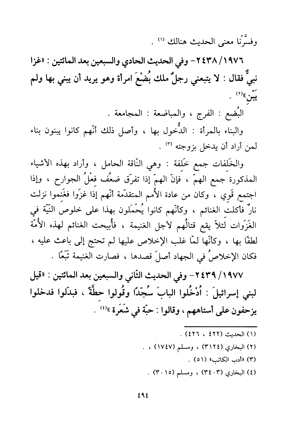 1976 - / 2438 - وَفِي الحَدِيث الْحَادِي وَالسبْعين بعد الْمِائَتَيْنِ: ((غزا نَبِي فَقَالَ: لَا يَتبعني رجل ملك بضع امْرَأَة وَهُوَ يُرِيد أَن يَبْنِي بهَا وَلم يبن)) .
