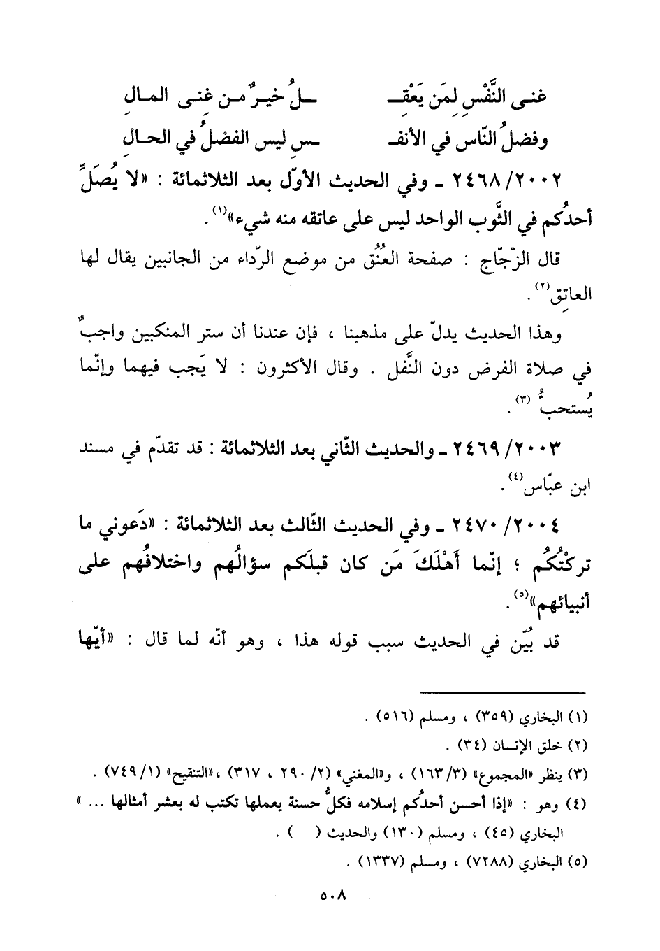 2002 - / 2468 - وَفِي الحَدِيث الأول بعد الثلاثمائة: ((لَا يصل أحدكُم فِي الثَّوْب الْوَاحِد لَيْسَ على عَاتِقه مِنْهُ شَيْء)) .