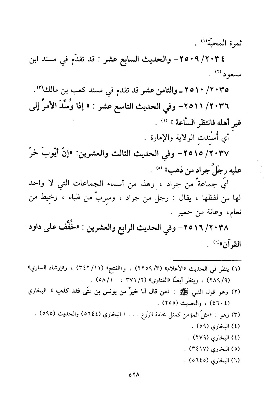 2038 - / 2516 - وَفِي الحَدِيث الرَّابِع وَالْعِشْرين: ((خفف على دَاوُد الْقُرْآن)) .