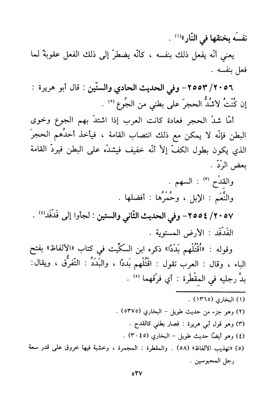 2056 - / 2553 - وَفِي الحَدِيث الْحَادِي وَالسِّتِّينَ: قَالَ أَبُو هُرَيْرَة: إِن كنت لأشد الْحجر على بَطْني من الْجُوع.