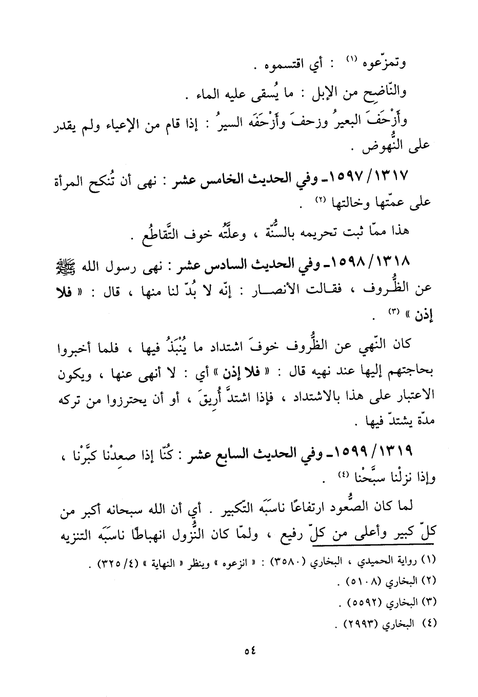 1317 - / 1597 - وَفِي الحَدِيث الْخَامِس عشر: نهى أَن تنْكح الْمَرْأَة على عَمَّتهَا وخالتها.