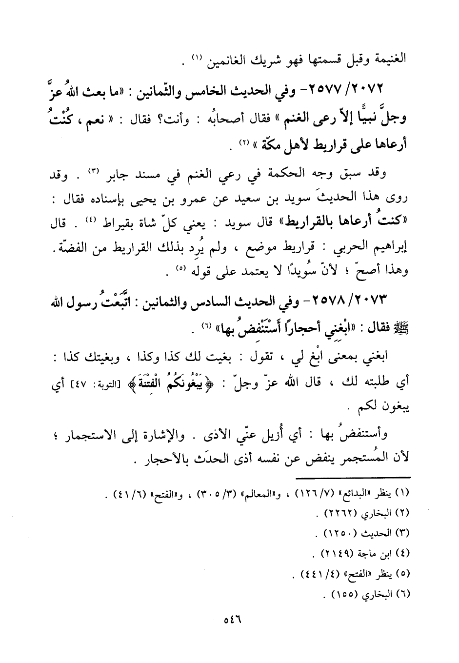 2073 - / 2578 - وَفِي الحَدِيث السَّادِس والثمانين: اتبعت رَسُول الله صلى الله عَلَيْهِ وَسلم فَقَالَ: ((ابغني أحجارا أستنفض بهَا)) .