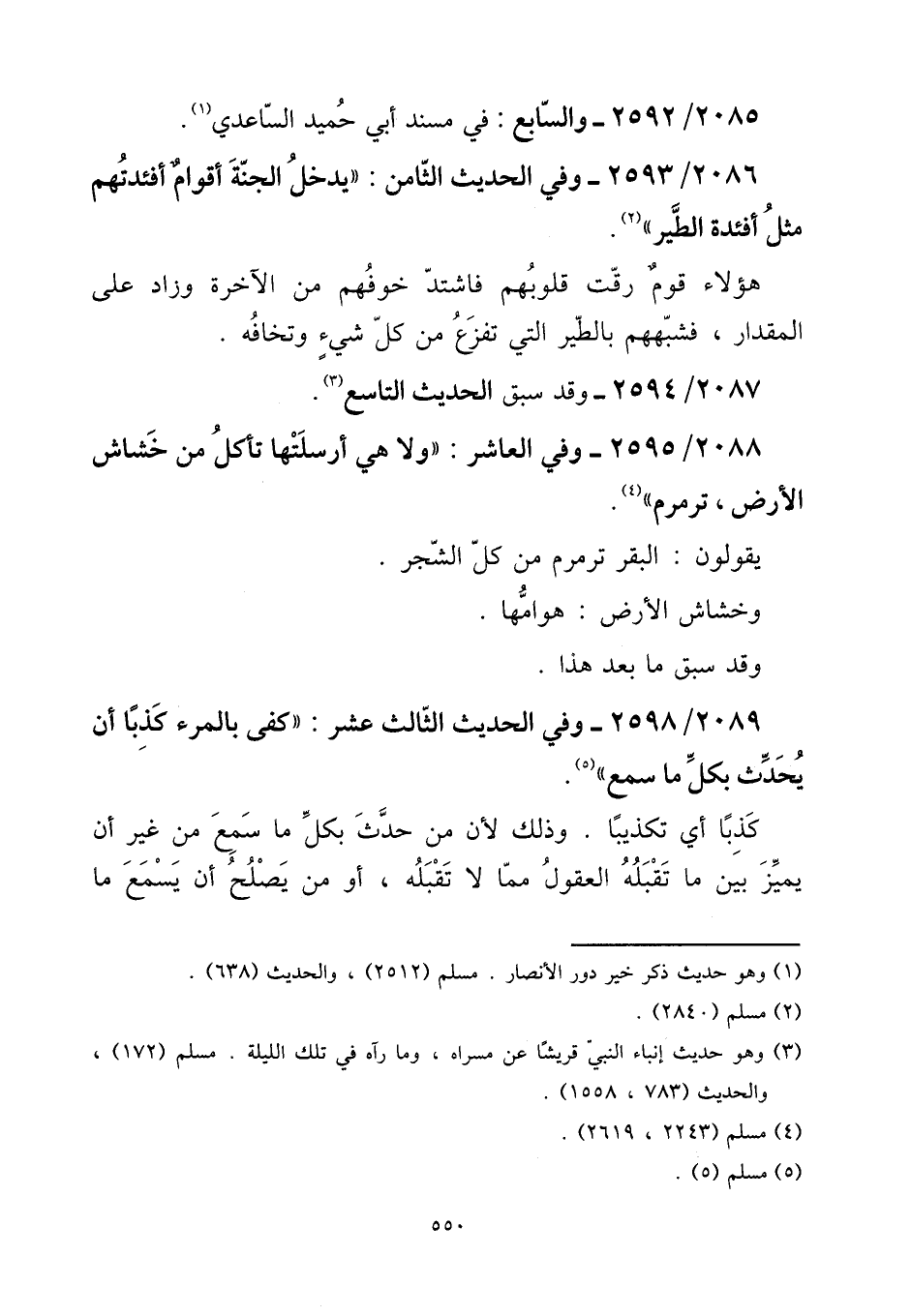 2086 - / 2593 - وَفِي الحَدِيث الثَّامِن: ((يدْخل الْجنَّة أَقوام أفئدتهم مثل أَفْئِدَة الطير)) .