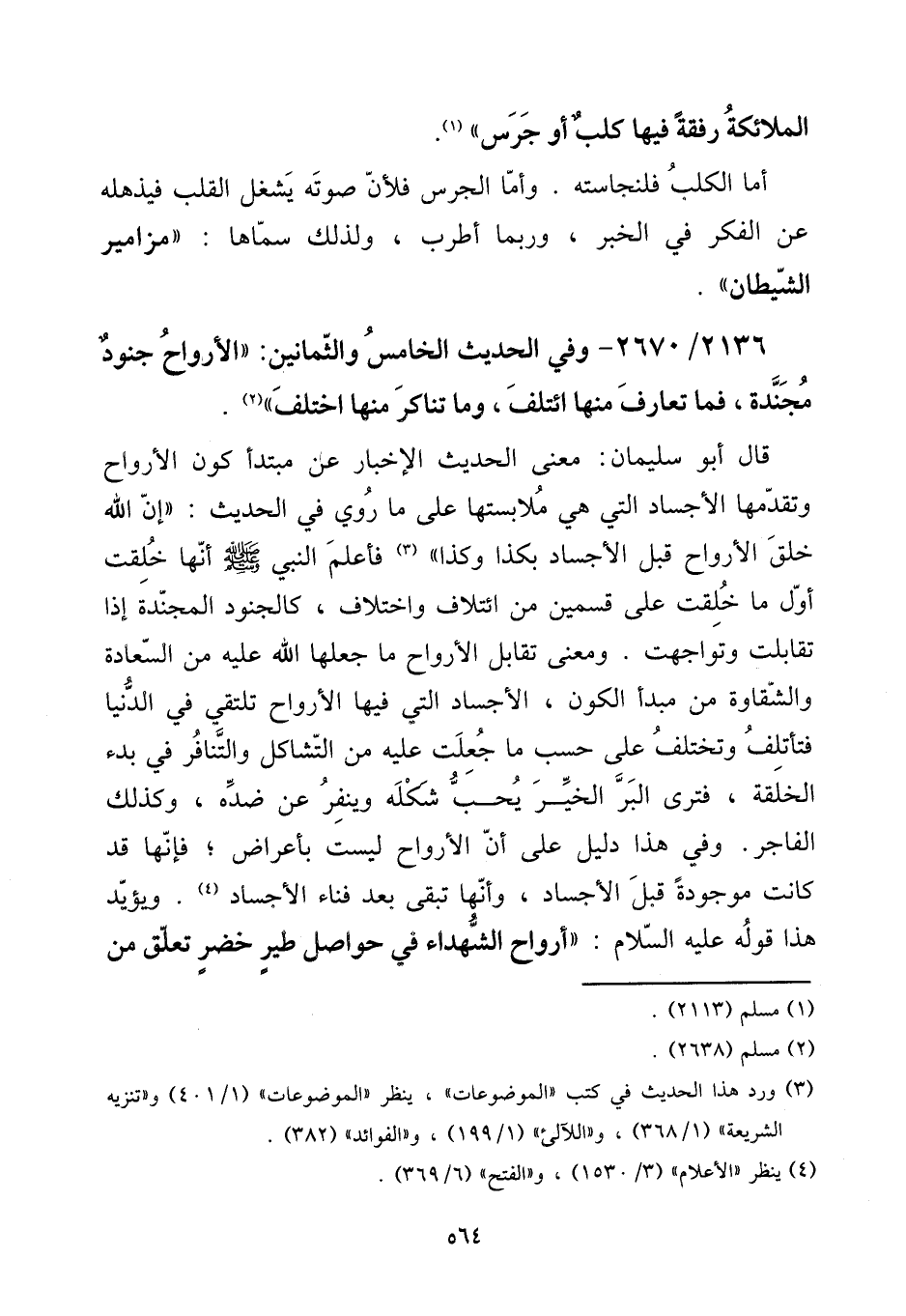 2136 - / 2670 - وَفِي الحَدِيث الْخَامِس والثمانين: ((الْأَرْوَاح جنود مجندة، فَمَا تعارف مِنْهَا ائتلف، وَمَا تناكر مِنْهَا اخْتلف)) .