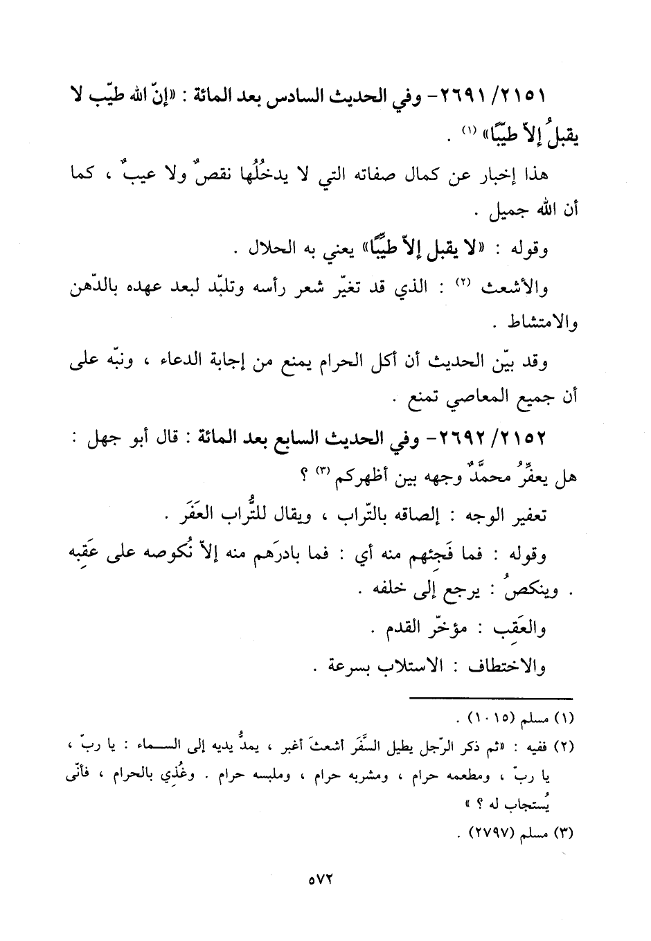 2151 - / 2691 - وَفِي الحَدِيث السَّادِس بعد الْمِائَة: ((إِن الله طيب لَا يقبل إِلَّا طيبا)) .