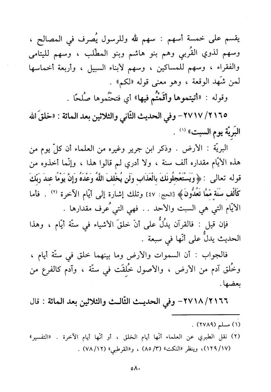 2165 - / 2717 - وَفِي الحَدِيث الثَّانِي وَالثَّلَاثِينَ بعد الْمِائَة: ((خلق الله الْبَريَّة يَوْم السبت)) .