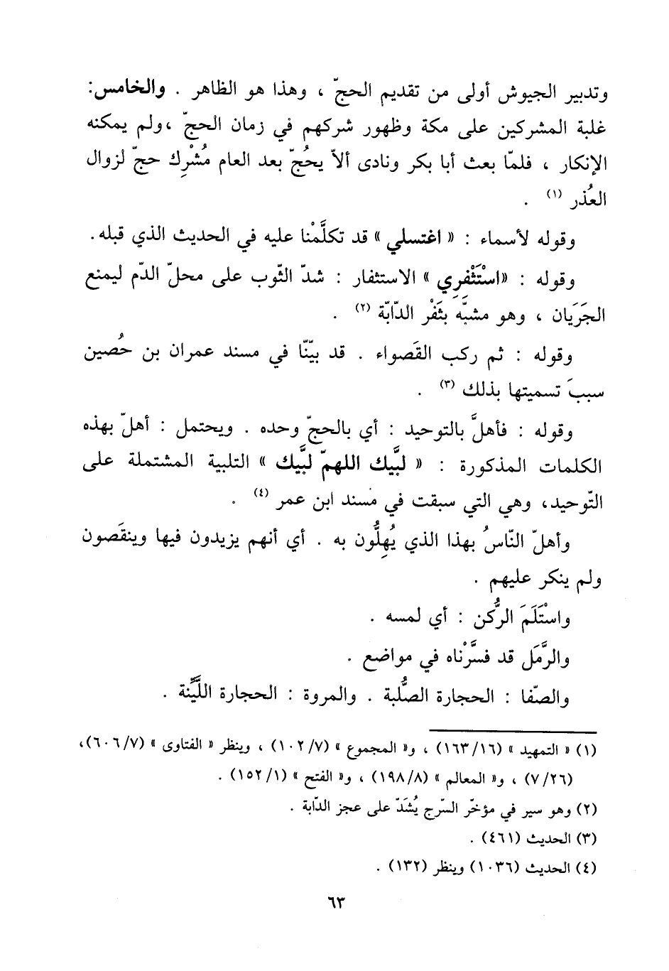 وتدبير الجيوش أولى من تَقْدِيم الْحَج، وَهَذَا هُوَ الظَّاهِر. وَالْخَامِس: غَلَبَة الْمُشْركين على مَكَّة وَظُهُور شركهم فِي زمَان الْحَج، وَلم يُمكنهُ الْإِنْكَار، فَلَمَّا بعث أَبَا بكر ونادى أَلا يحجّ بعد الْعَام مُشْرك حج لزوَال الْعذر.