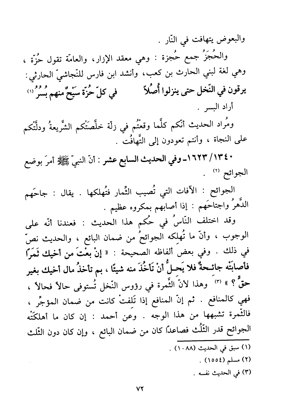 1340 - / 1623 - وَفِي الحَدِيث السَّابِع عشر: أَن النَّبِي صلى الله عَلَيْهِ وَسلم أَمر بِوَضْع الجوائح.