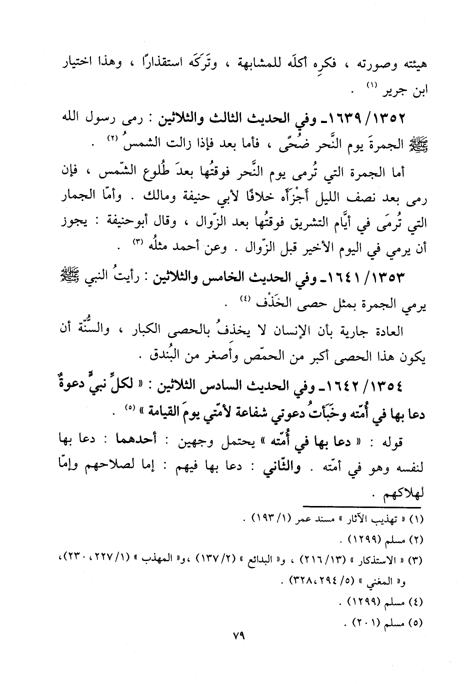 1353 - / 1641 - وَفِي الحَدِيث الْخَامِس وَالثَّلَاثِينَ: رَأَيْت النَّبِي صلى الله عَلَيْهِ وَسلم يَرْمِي الْجَمْرَة بِمثل حَصى الْخذف.