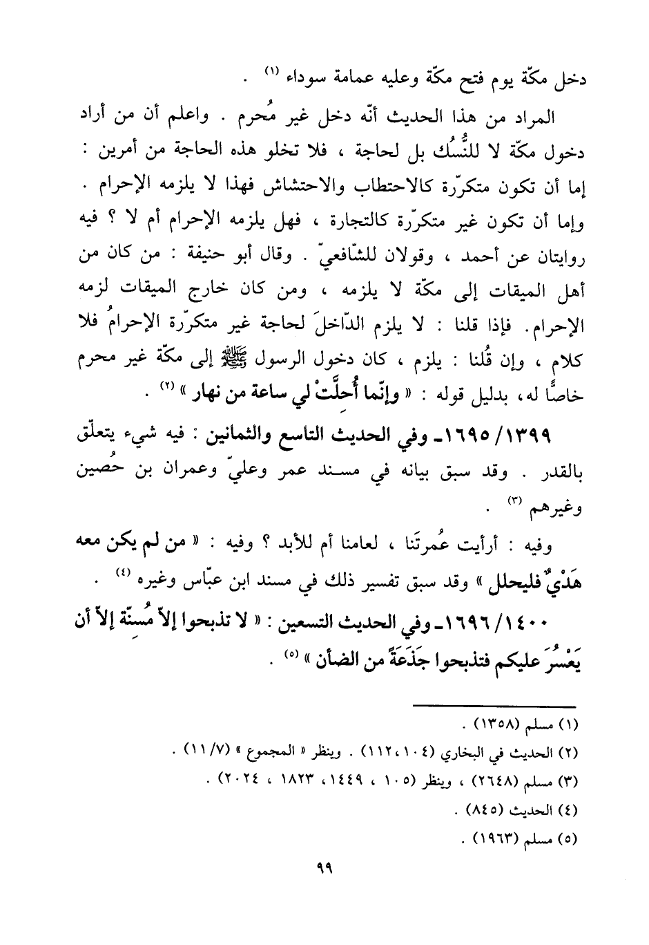 المُرَاد من هَذَا الحَدِيث أَنه دخل غير محرم. وَاعْلَم أَن من أَرَادَ دُخُول مَكَّة لَا للنسك بل لحَاجَة، فَلَا تَخْلُو هَذِه الْحَاجة من أَمريْن: إِمَّا أَن تكون متكررة كالإحتطاب والإحتشاش فَهَذَا لَا يلْزمه الْإِحْرَام.
