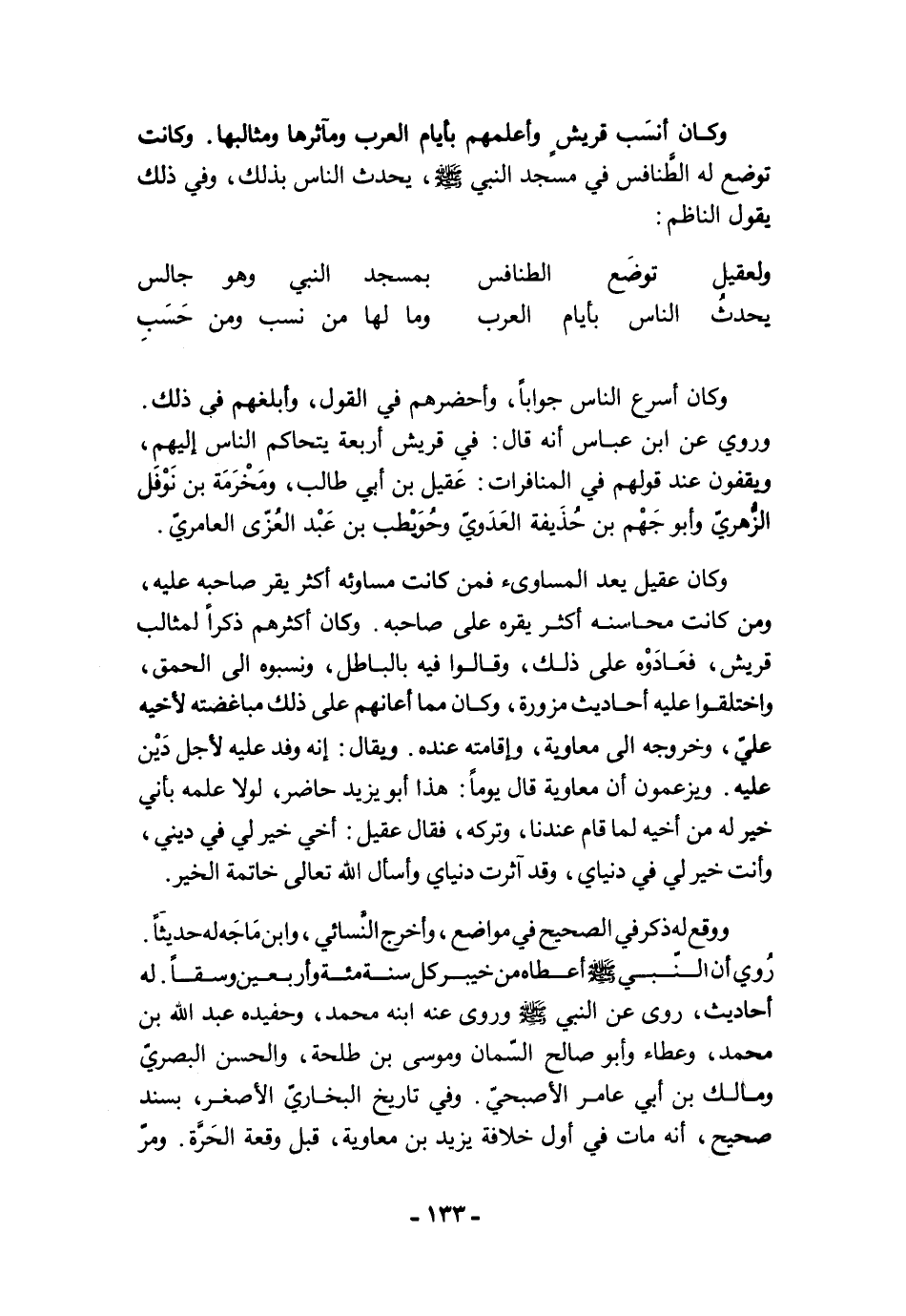 ولعقيل توضَع الطنافس ... بمسجد النبي وهو جالس