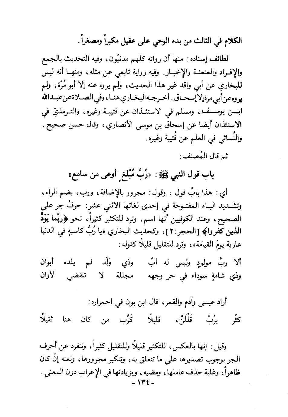 باب قول النبي -صلى الله عليه وسلم-: "رُبَّ مُبْلغٍ أوعى من سامع"