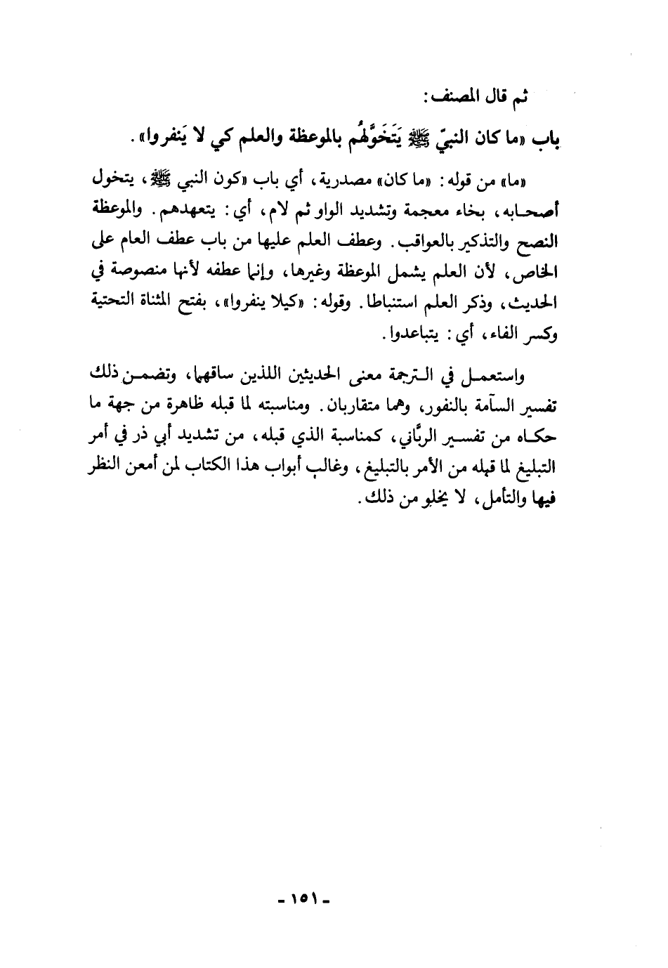 باب "ما كان النبيّ -صلى الله عليه وسلم- يَتَخَوَّلهُم بالموعظة والعلم كي لا يَنفروا".