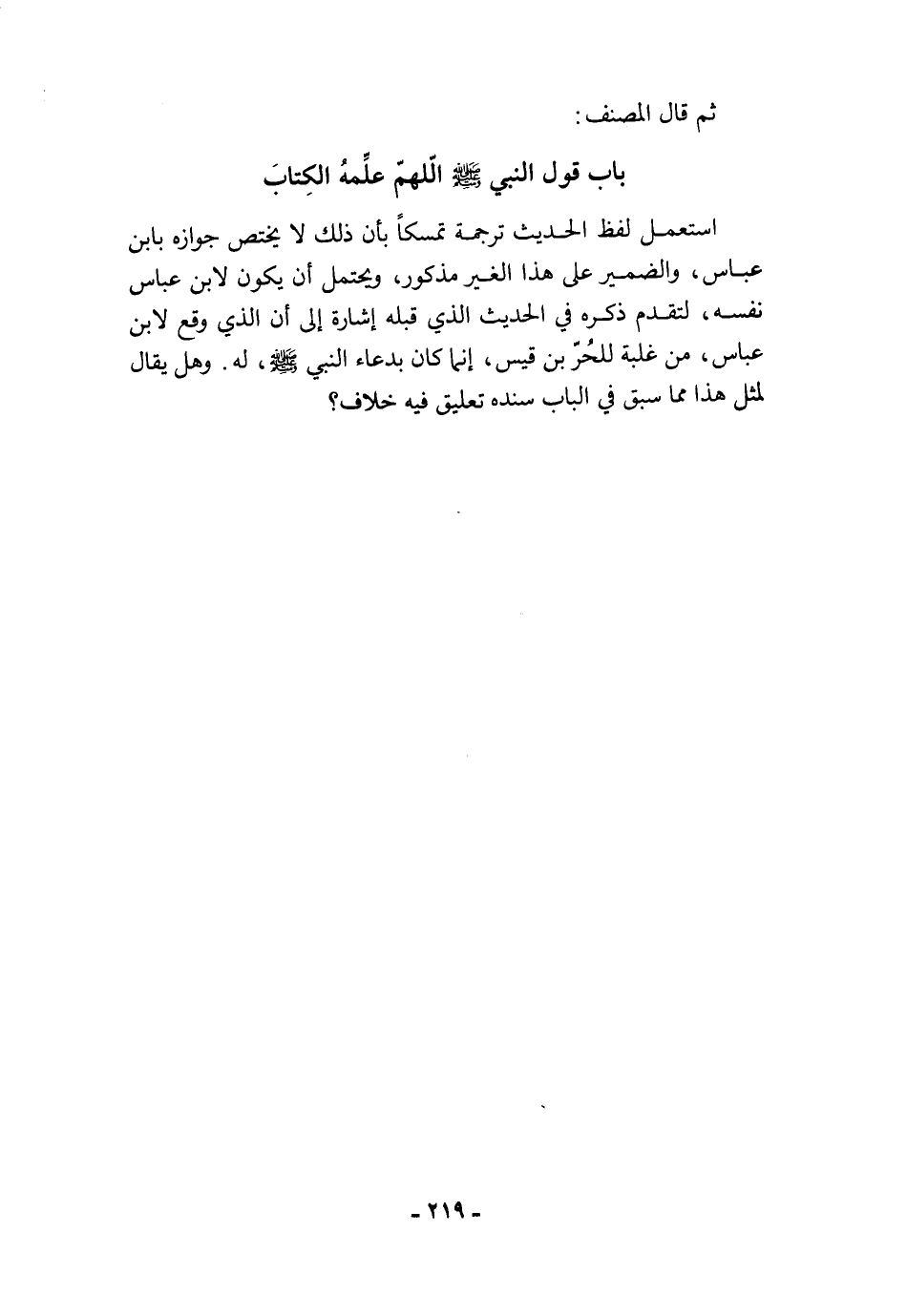 باب قول النبي -صلى الله عليه وسلم- اللهمّ علِّمهُ الكِتابَ