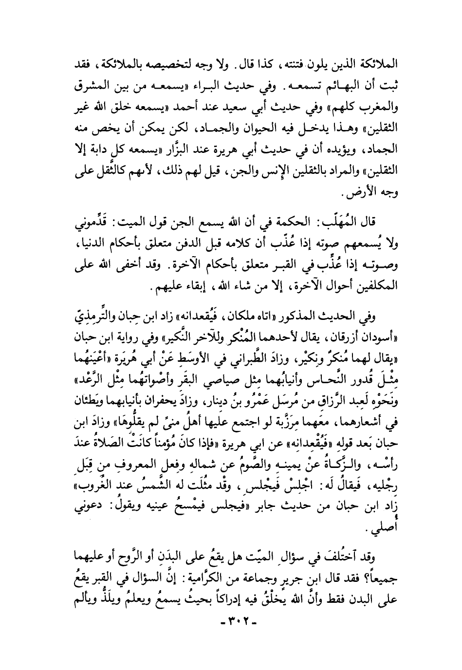 وقد اختُلفَ في سؤالِ الميّت هل يقعُ على البدَنِ أو الرَّوح أو عليهما جميعًا؟ فقد قال ابن جريرٍ وجماعة من الكرَّامية: إنَّ السؤال في القبر يقعُ على البدن فقط وأنَّ الله يخلْقُ فيه إدراكًا بحيثُ يسمعُ ويعلمُ ويلَذُّ ويألم