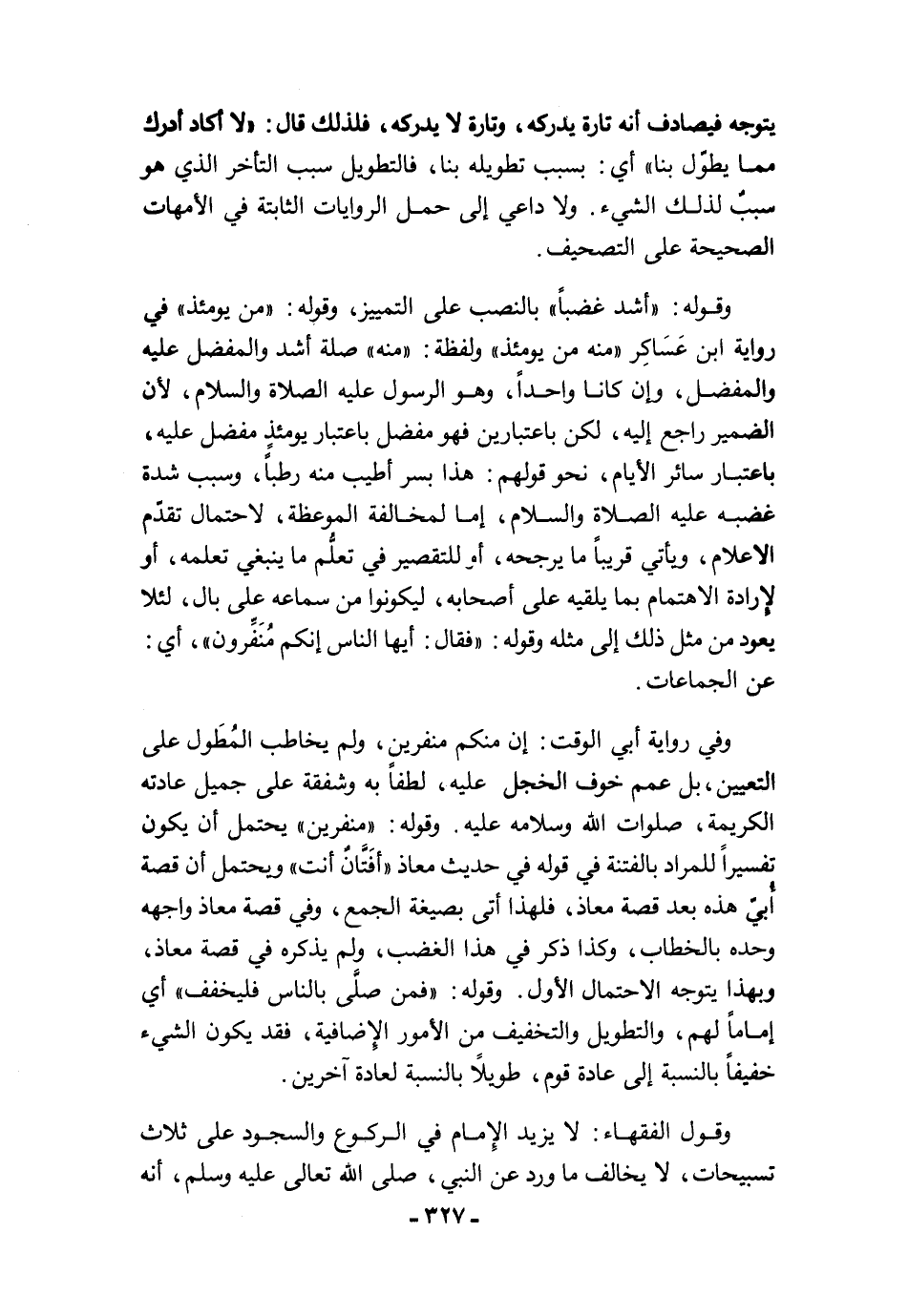 يتوجه فيصادف أنه تارة يدركه، وتارة لا يدركه، فلذلك قال: "لا أكاد أدرك مما يطوّل بنا" أي: بسبب تطويله بنا، فالتطويل سبب التأخر الذي هو سببٌ لذلك الشيء. ولا داعي إلى حمل الروايات الثابتة في الأمهات الصحيحة على التصحيف.