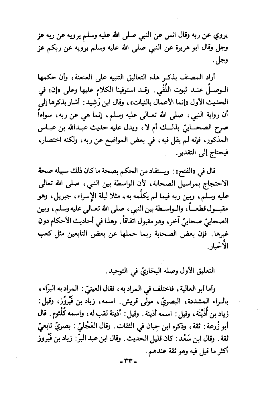 أراد المصنف بذكر هذه التعاليق التنبيه على العنعنة، وأن حكمها الوصلُ عند ثبوت اللَّقْي. وقد استوفينا الكلام عليها وعلى "إن" في الحديث الأول "إنما الأعمال بالنيات"، وقال ابن رَشِيد: أشار بذكرها إلى أن رواية النبي، صلى الله تعالى عليه وسلم، إنما هي عن ربه، سواءًا صرح الصحابيّ بذلك أم لا، ويدل عليه حديث عبد الله بن عباس المذكور، فإنه لم يقل فيه، في بعض المواضع عن ربه، ولكنه اختصار، فيحتاج إلى التقدير.