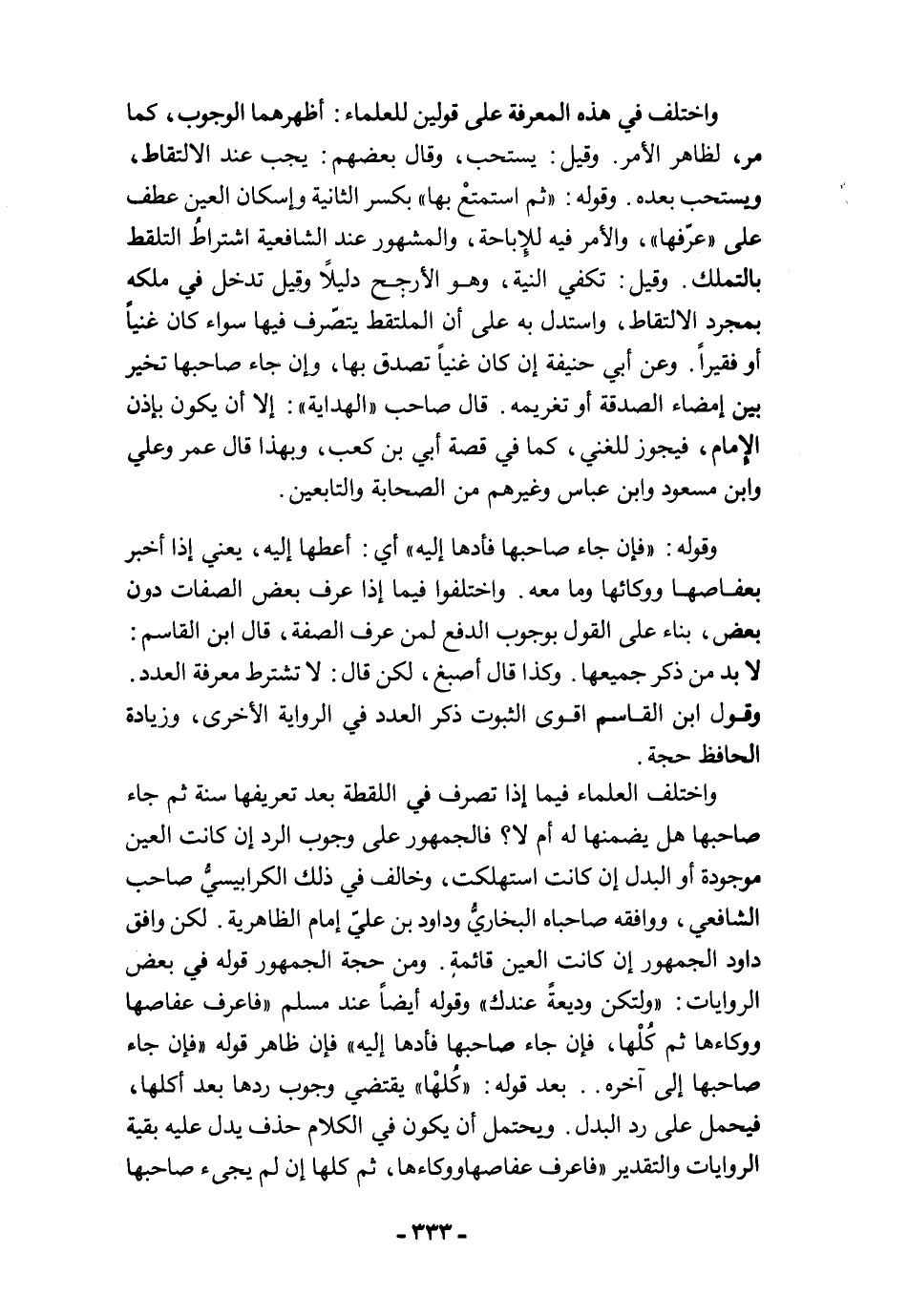 واختلف في هذه المعرفة على قولين للعلماء: أظهرهما الوجوب، كما مر، لظاهر الأمر. وقيل: يستحب، وقال بعضهم: يجب عند الالتقاط، ويستحب بعده. وقوله: "ثم استمتعْ بها" بكسر الثانية وإسكان العين عطف على "عرّفها"، والأمر فيه للإباحة، والمشهور عند الشافعية اشتراطُ التلقط بالتملك. وقيل: تكفي النية، وهو الأرجح دليلًا وقيل تدخل في ملكه بمجرد الالتقاط، واستدل به على أن الملتقط يتصّرف فيها سواء كان غنيًا أو فقيرًا. وعن أبي حنيفة إن كان غنيًا تصدق بها، وإن جاء صاحبها تخير بين إمضاء الصدقة أو تغريمه. قال صاحب "الهداية": إلا أن يكون بإذن الإمام، فيجوز للغني، كما في قصة أبي بن كعب، وبهذا قال عمر وعلي وابن مسعود وابن عباس وغيرهم من الصحابة والتابعين.
