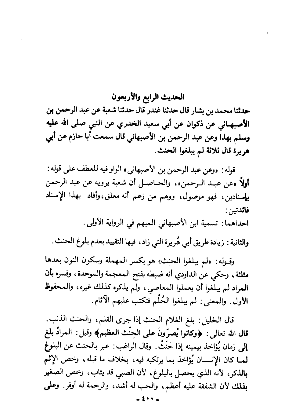 حَدَّثَنَا مُحَمَّدُ بْنُ بَشَّارٍ قَالَ حَدَّثَنَا غُنْدَرٌ قَالَ حَدَّثَنَا شُعْبَةُ عَنْ عَبْدِ الرَّحْمَنِ بْنِ الأَصْبَهَانِىِّ عَنْ ذَكْوَانَ عَنْ أَبِى سَعِيدٍ الْخُدْرِيِّ عَنِ النَّبِيِّ -صلى الله عليه وسلم- بِهَذَا. وَعَنْ عَبْدِ الرَّحْمَنِ بْنِ الأَصْبَهَانِيِّ قَالَ سَمِعْتُ أَبَا حَازِمٍ عَنْ أَبِى هُرَيْرَةَ قَالَ: "ثَلاَثَةً لَمْ يَبْلُغُوا الْحِنْثَ".