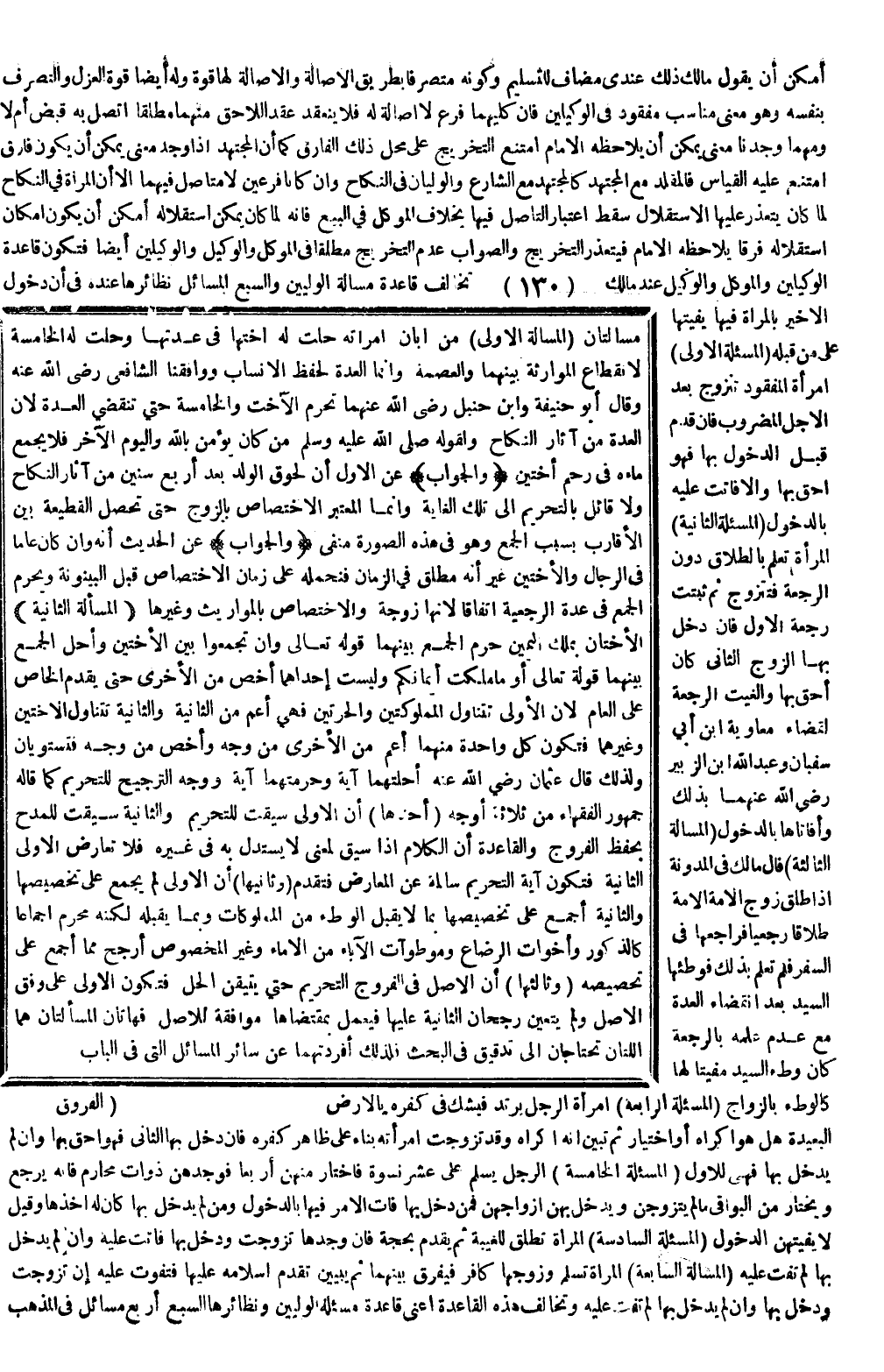 (وَثَالِثُهَا) أَنَّ الْأَصْلَ فِي الْفُرُوجِ التَّحْرِيمُ حَتَّى يُتَيَقَّنَ الْحِلُّ فَتَكُونُ الْأُولَى عَلَى وَفْقِ الْأَصْلِ وَلَمْ يَتَعَيَّنْ رُجْحَانُ الثَّانِيَةِ عَلَيْهَا فَيُعْمَلُ بِمُقْتَضَاهَا مُوَافَقَةً لِلْأَصْلِ فَهَاتَانِ الْمَسْأَلَتَانِ هُمَا اللَّتَانِ تَحْتَاجَانِ إلَى تَدْقِيقٍ فِي الْبَحْثِ فَلِذَلِكَ أَفْرَدْتهمَا عَنْ سَائِرِ الْمَسَائِلِ الَّتِي فِي الْبَابِ.