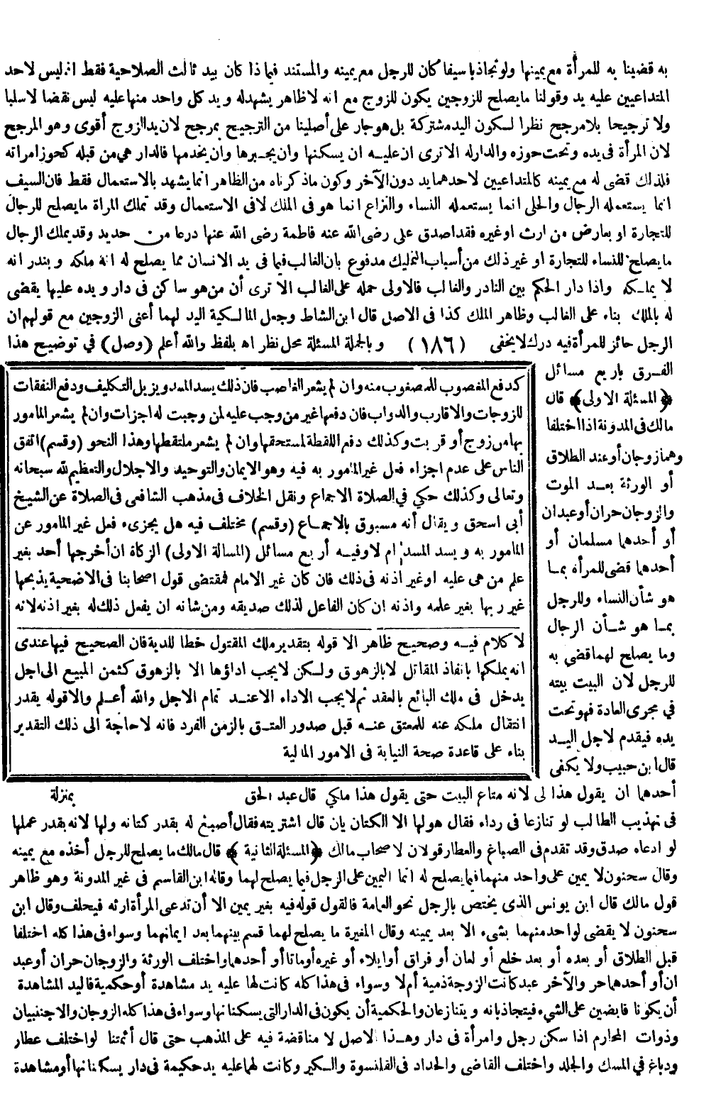 (الْمَسْأَلَةُ الْأُولَى) قَالَ مَالِكٌ فِي الْمُدَوَّنَةِ إذَا اخْتَلَفَا وَهُمَا زَوْجَانِ أَوْ عِنْدَ الطَّلَاقِ أَوْ الْوَرَثَةُ بَعْدَ الْمَوْتِ وَالزَّوْجَانِ حُرَّانِ أَوْ عَبْدَانِ أَوْ أَحَدُهُمَا مُسْلِمَانِ أَوْ أَحَدُهُمَا قُضِيَ لِلْمَرْأَةِ بِمَا هُوَ شَأْنُ النِّسَاءِ وَلِلرَّجُلِ بِمَا هُوَ شَأْنُ الرِّجَالِ وَمَا يَصْلُحُ لَهُمَا قُضِيَ بِهِ لِلرَّجُلِ لِأَنَّ الْبَيْتَ بَيْتُهُ فِي مَجْرَى الْعَادَةِ فَهُوَ تَحْتَ يَدِهِ فَيُقَدَّمُ لِأَجْلِ الْيَدِ قَالَ ابْنُ حَبِيبٍ وَلَا يَكْفِي