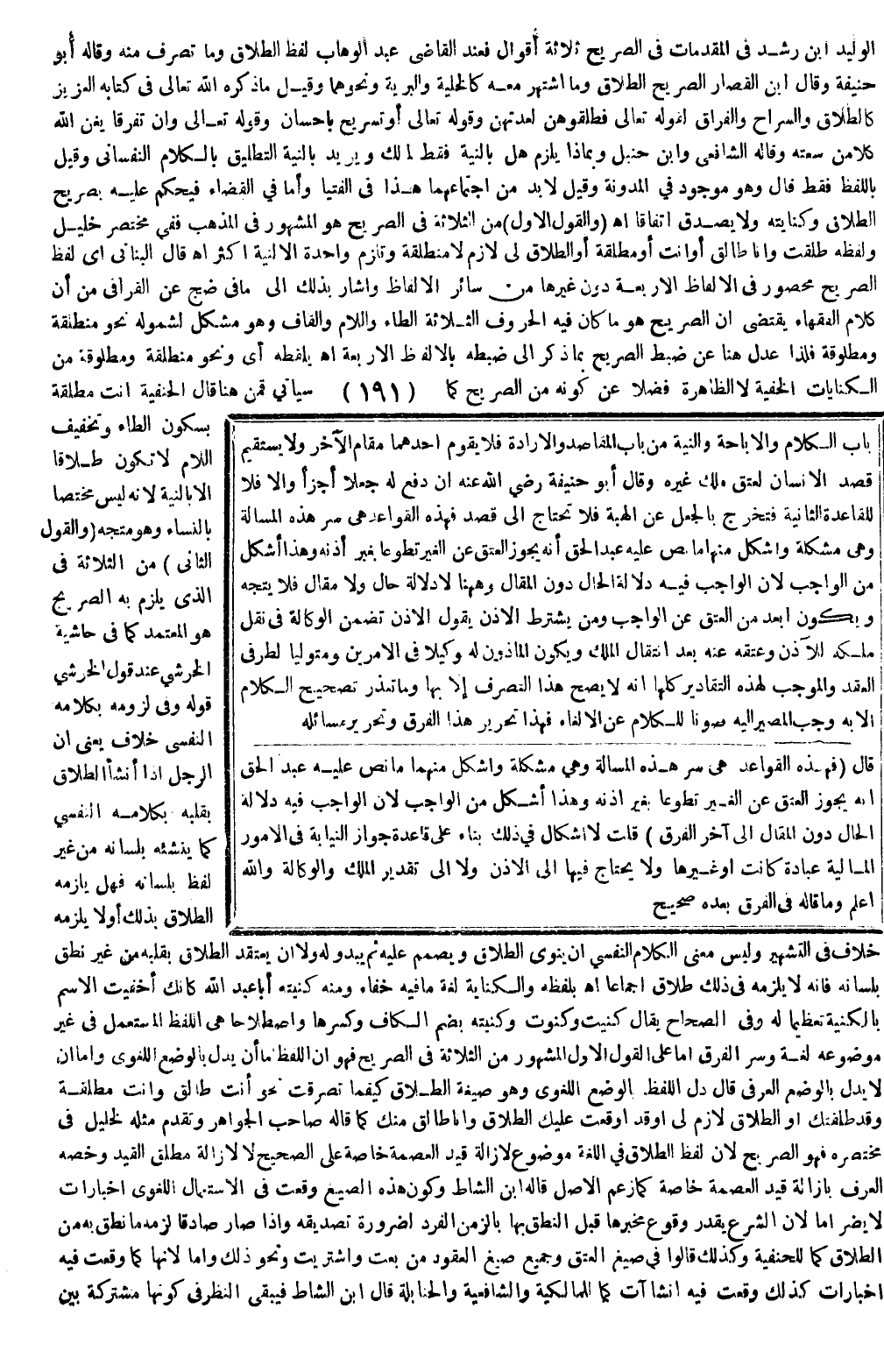ـــــــــــــــــــــــــــــQفِي الْمُقَدِّمَاتِ فِي الصَّرِيحِ ثَلَاثَةُ أَقْوَالٍ فَعِنْدَ الْقَاضِي عَبْدِ الْوَهَّابِ لَفْظُ الطَّلَاقِ وَمَا تَصَرَّفَ مِنْهُ، وَقَالَهُ أَبُو حَنِيفَةَ.
