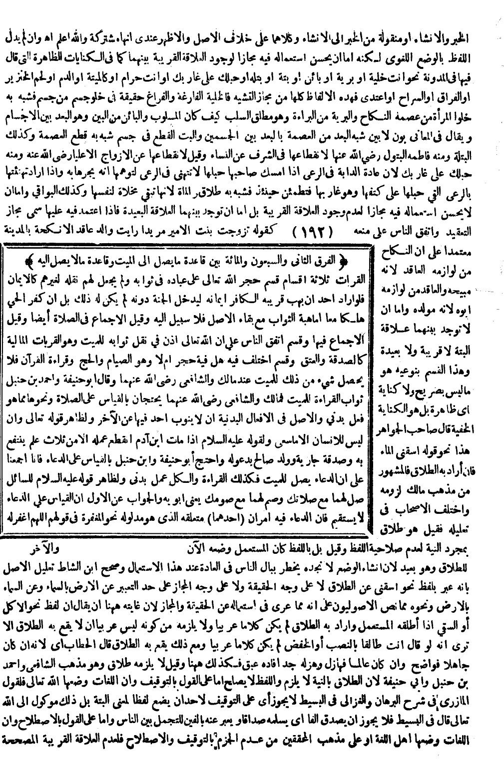 وَهُوَ مَذْهَبُ الشَّافِعِيِّ وَأَحْمَدَ بْنِ حَنْبَلٍ وَأَبِي حَنِيفَةَ؛ لِأَنَّ الطَّلَاقَ بِالنِّيَّةِ لَا يَلْزَمُ وَاللَّفْظُ لَا يَصْلُحُ إمَّا عَلَى الْقَوْلِ بِالتَّوْقِيفِ وَأَنَّ اللُّغَاتِ وَضَعَهَا اللَّهُ تَعَالَى فَلِقَوْلِ الْمَازِرِيِّ فِي شَرْحِ الْبُرْهَانِ وَالْغَزَالِيِّ فِي الْبَسِيطِ لَا يَجُوزُ أَيْ عَلَى التَّوْقِيفِ لِأَحَدٍ أَنْ يَضَعَ لَفْظًا لِمَعْنًى أَلْبَتَّةَ، بَلْ ذَلِكَ مَوْكُولٌ إلَى اللَّهِ تَعَالَى.