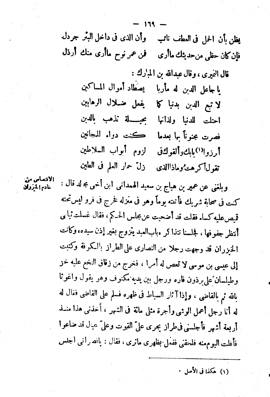 قَالَ النميري: وقَالَ عَبْد اللهِ بْن المبارك: