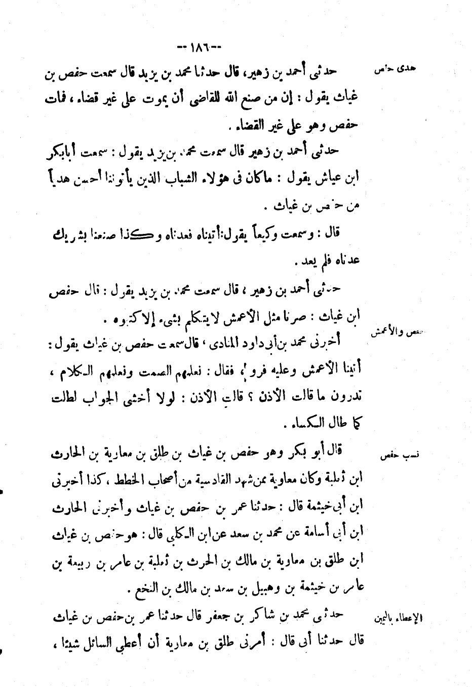 كذا أَخْبَرَنِي ابن أبي خيثمة قال: حَدَّثَنَا عُمَر بْن حفص بْن غياث.