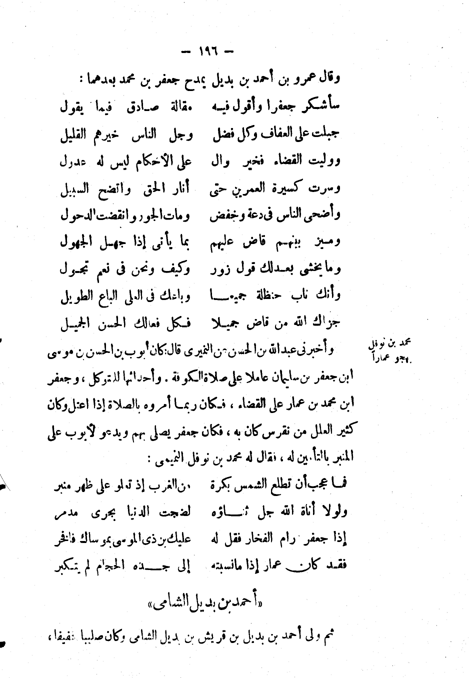 وقَالَ: عَمْرو بْن أَحْمَد بْن بديل يمدح جعفر بْن مُحَمَّد بعدهما: