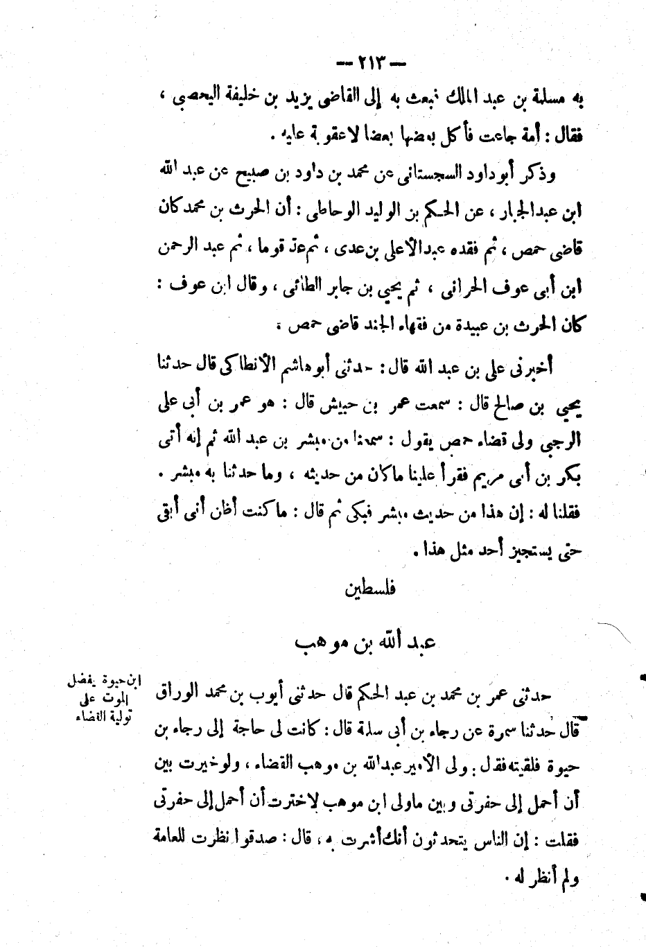 وذكر أَبُو داود السجستاني عَن مُحَمَّد بْن داود بْن صبيح عَنْ عَبْدِ اللهِ بن عَبْد الجبار، عَن الحكم بْن الوليد الوحاطي: أن الحارث بْن مُحَمَّد كان قاضي حمص