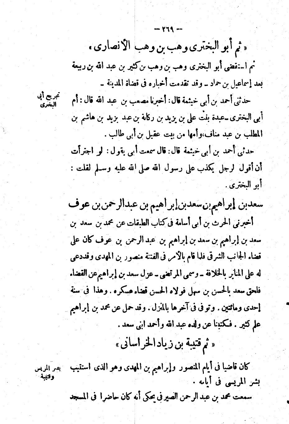 ثم استقضى أَبُو البختري وهب بْن وهب بْن كثير بْن عَبْد اللهِ بْن ربيعة بعد إسماعيل بْن حماد وقد تقدمت أخباره في قضاة المدينة.