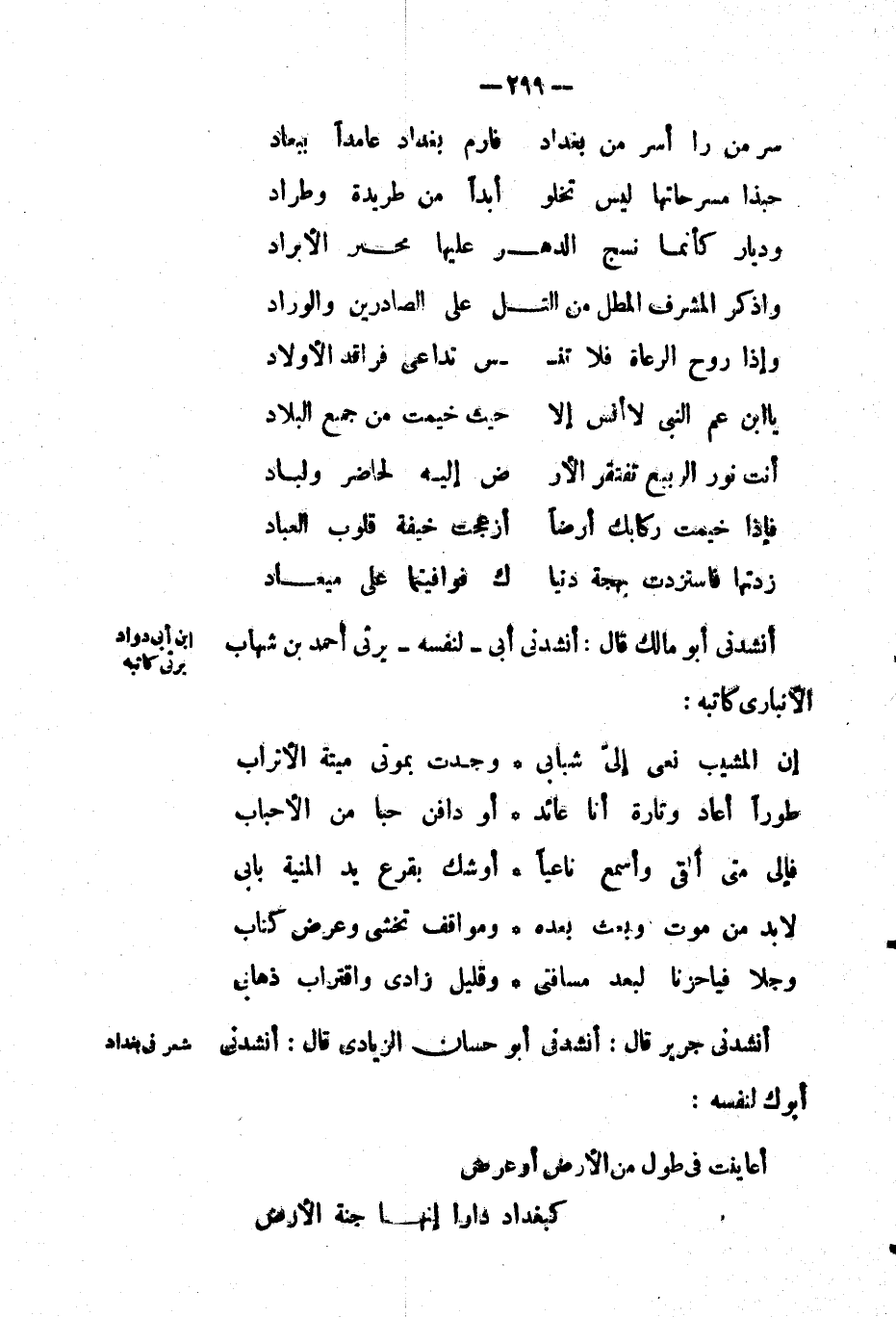 أنشدني أَبُو مالك قال: أنشدني أبي لنفسه يرثي أَحْمَد بْن شهاب الأنباري كاتبه: