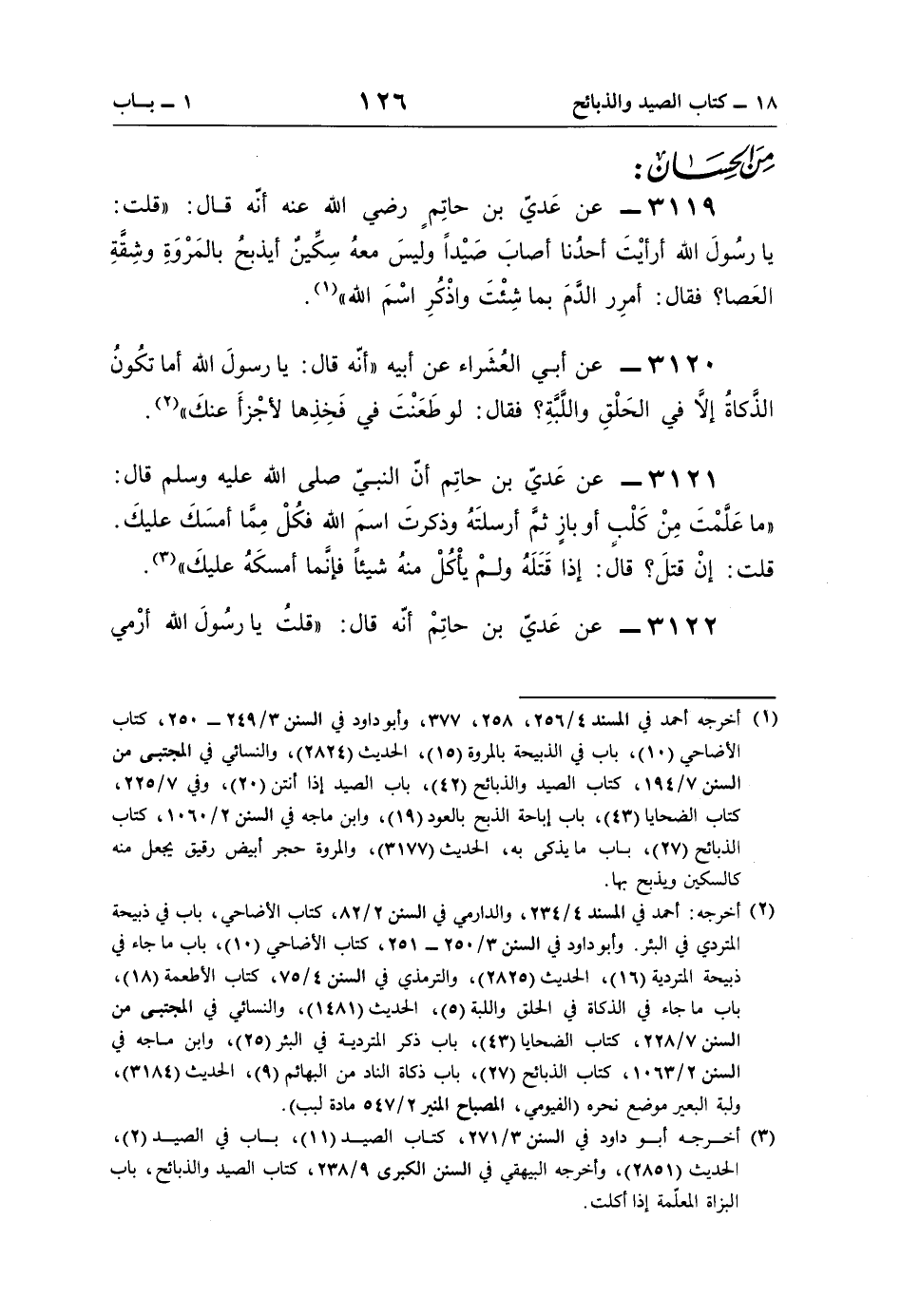 3122 - عن عَديّ بن حاتِمْ أنّه قال: "قلتُ يا رسُولَ اللَّه أرْمي