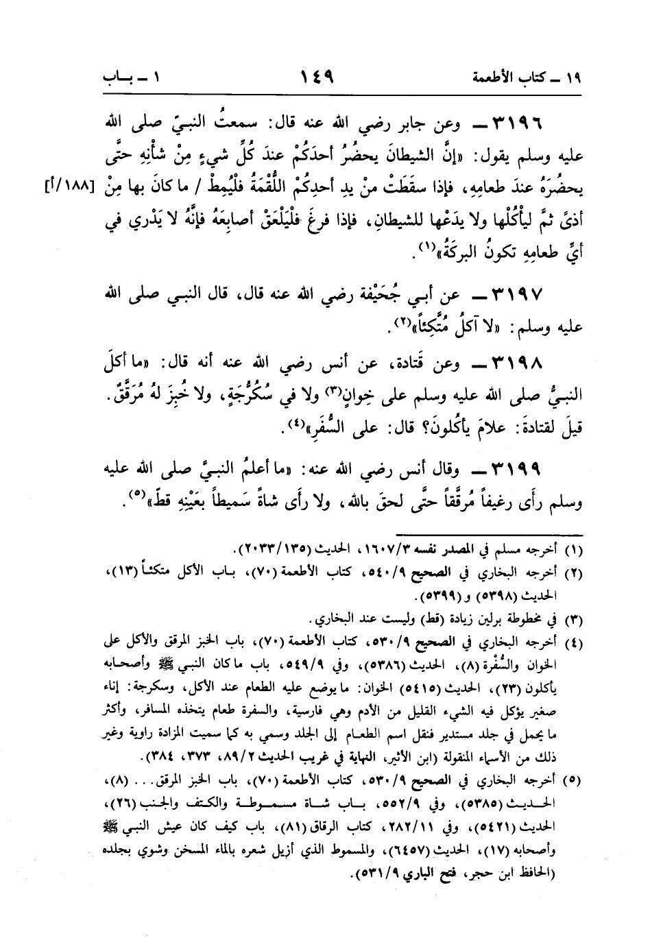 3197 - عن أبي جُحَيْفة رضي اللَّه عنه قال، قال النبي صلى اللَّه عليه وسلم: "لا آكلُ مُتَّكِئًا" (¬2).