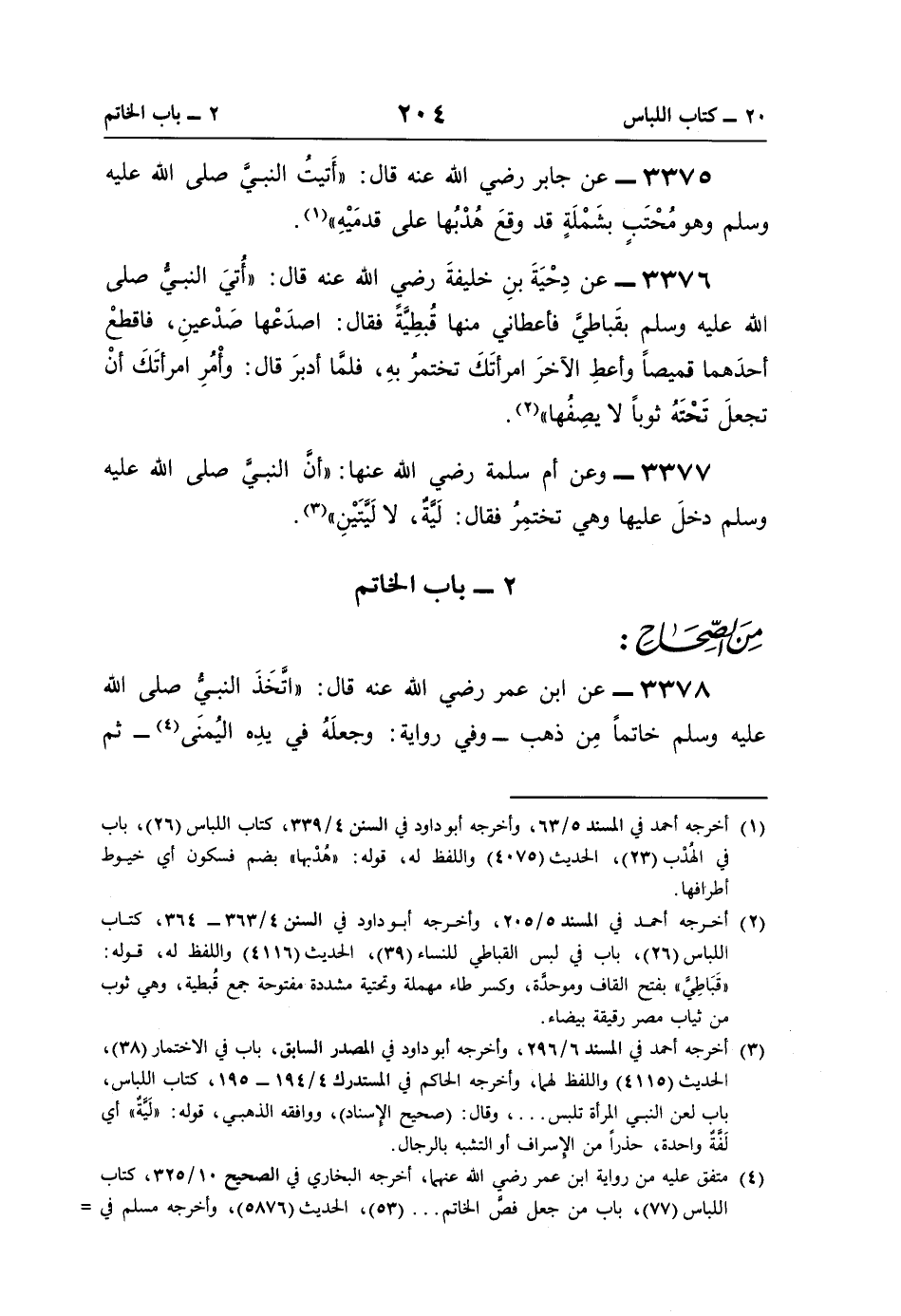 3378 - عن ابن عمر رضي اللَّه عنه قال: "اتَّخَذَ النبيُّ صلى اللَّه عليه وسلم خاتمًا مِن ذهب -وفي رواية: وجعلَهُ في يدِه اليُمنَى (¬4) - ثم