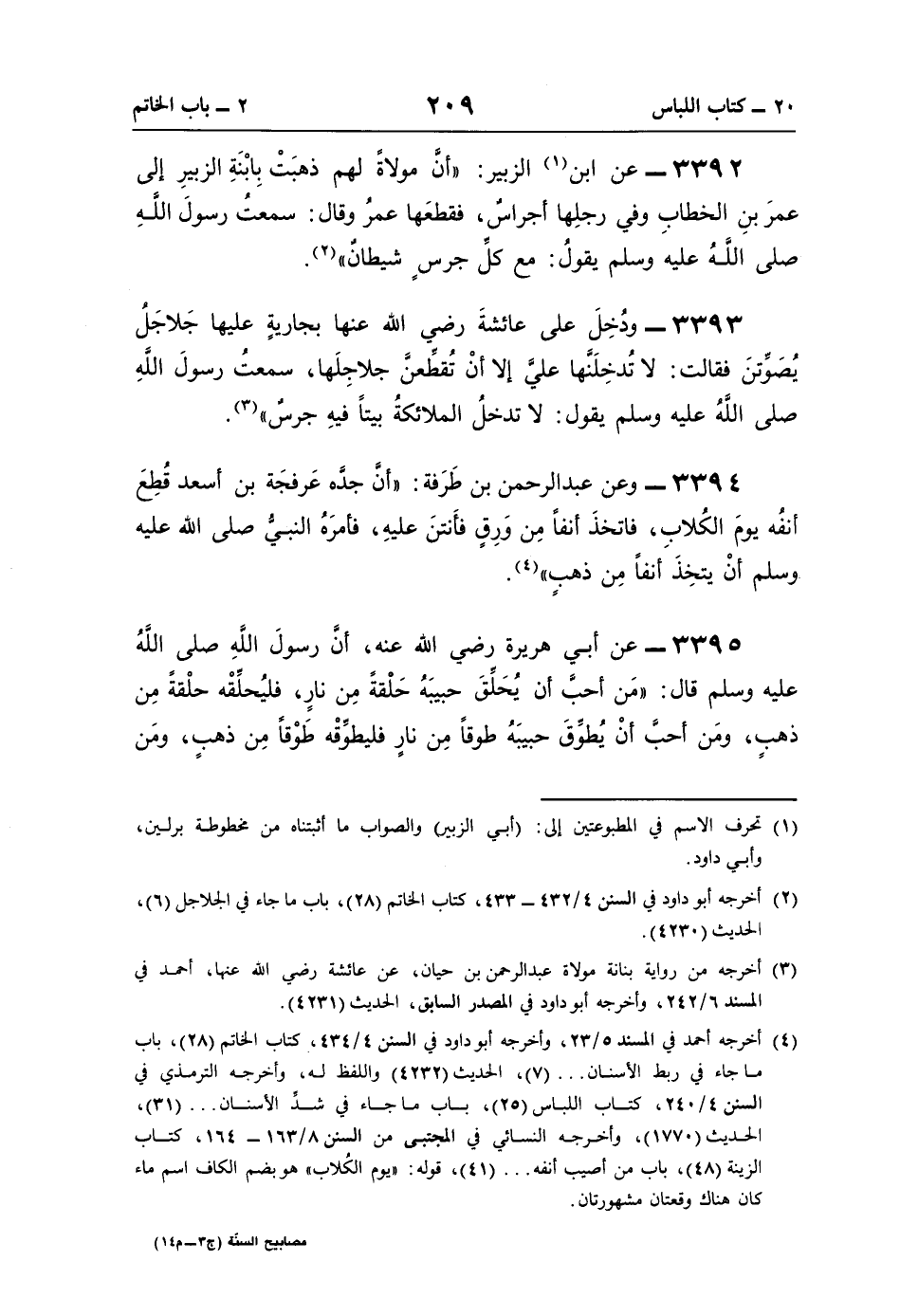 (¬2) أخرجه أبو داود في السنن 4/ 432 - 433، كتاب الخاتم (28)، باب ما جاء في الجلاجل (6)، الحديث (4230).