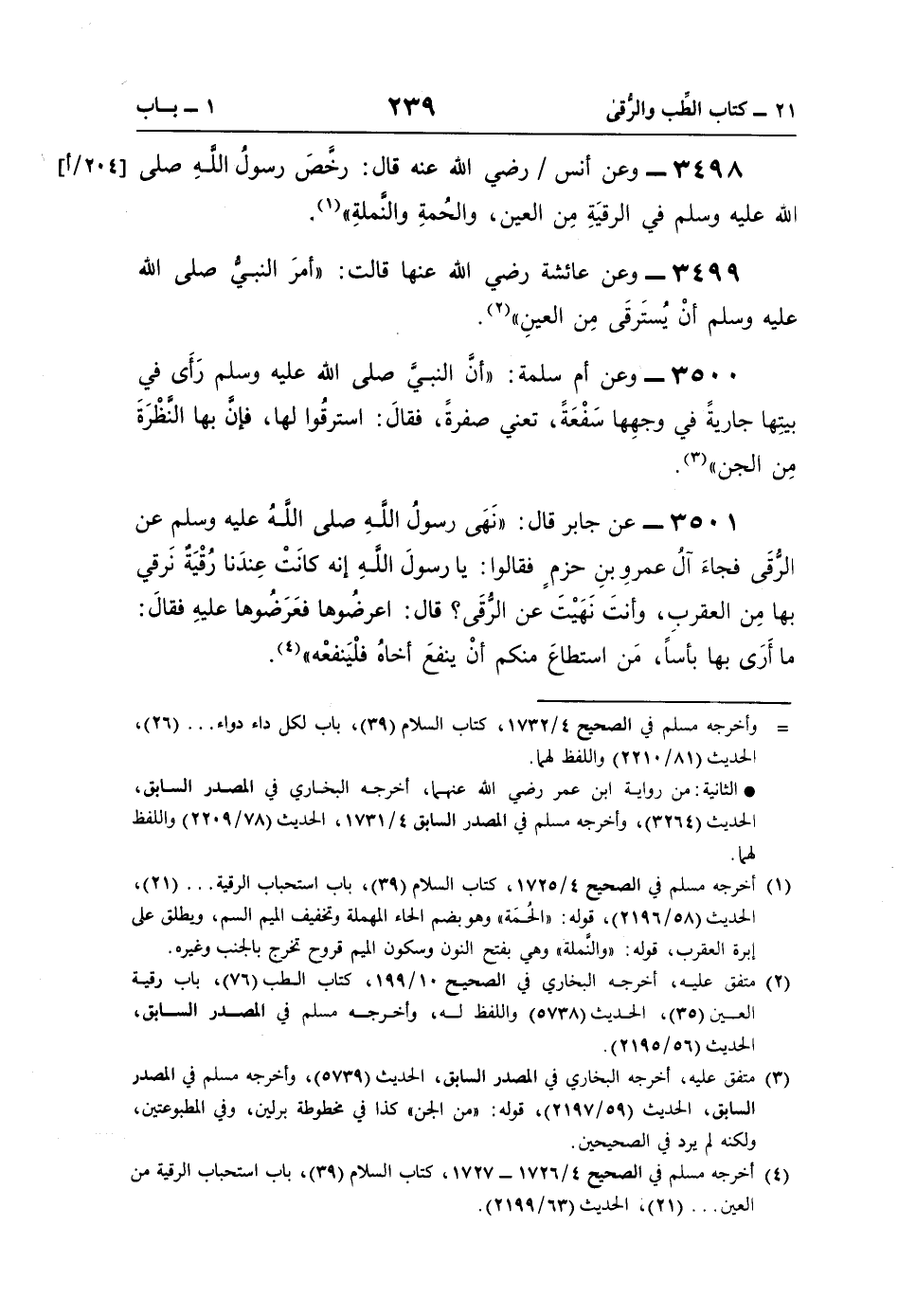 (¬4) أخرجه مسلم في الصحيح 4/ 1726 - 1727، كتاب السلام (39)، باب استحباب الرقية من العين. . . (21)، الحديث (63/ 2199).