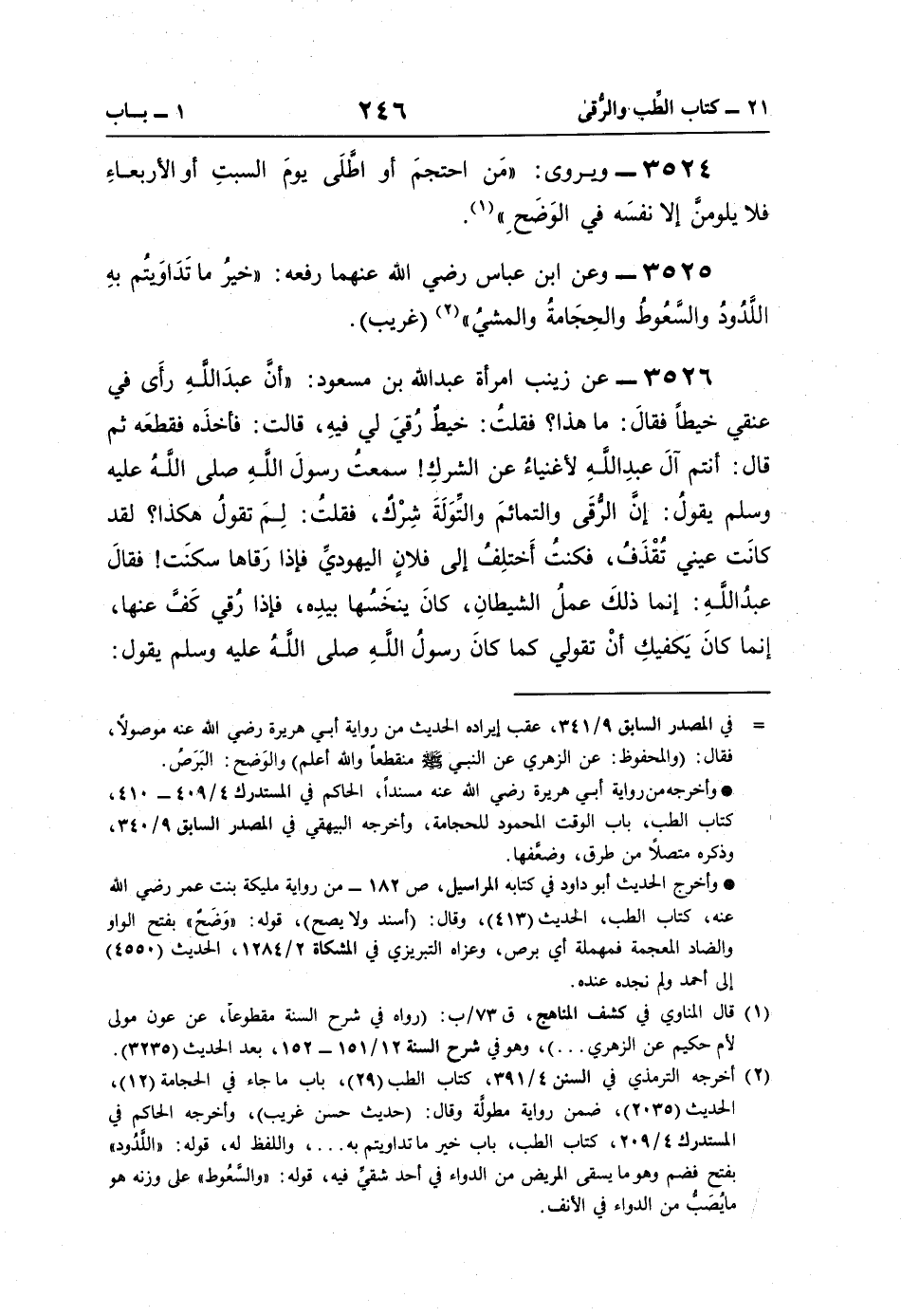 3525 - وعن ابن عباس رضي اللَّه عنهما رفعه: "خيرُ ما تَدَاويَتُم بهِ اللَّدُودُ والسَّعُوطُ والحِجَامةُ والمشيُ" (¬2) (غريب).