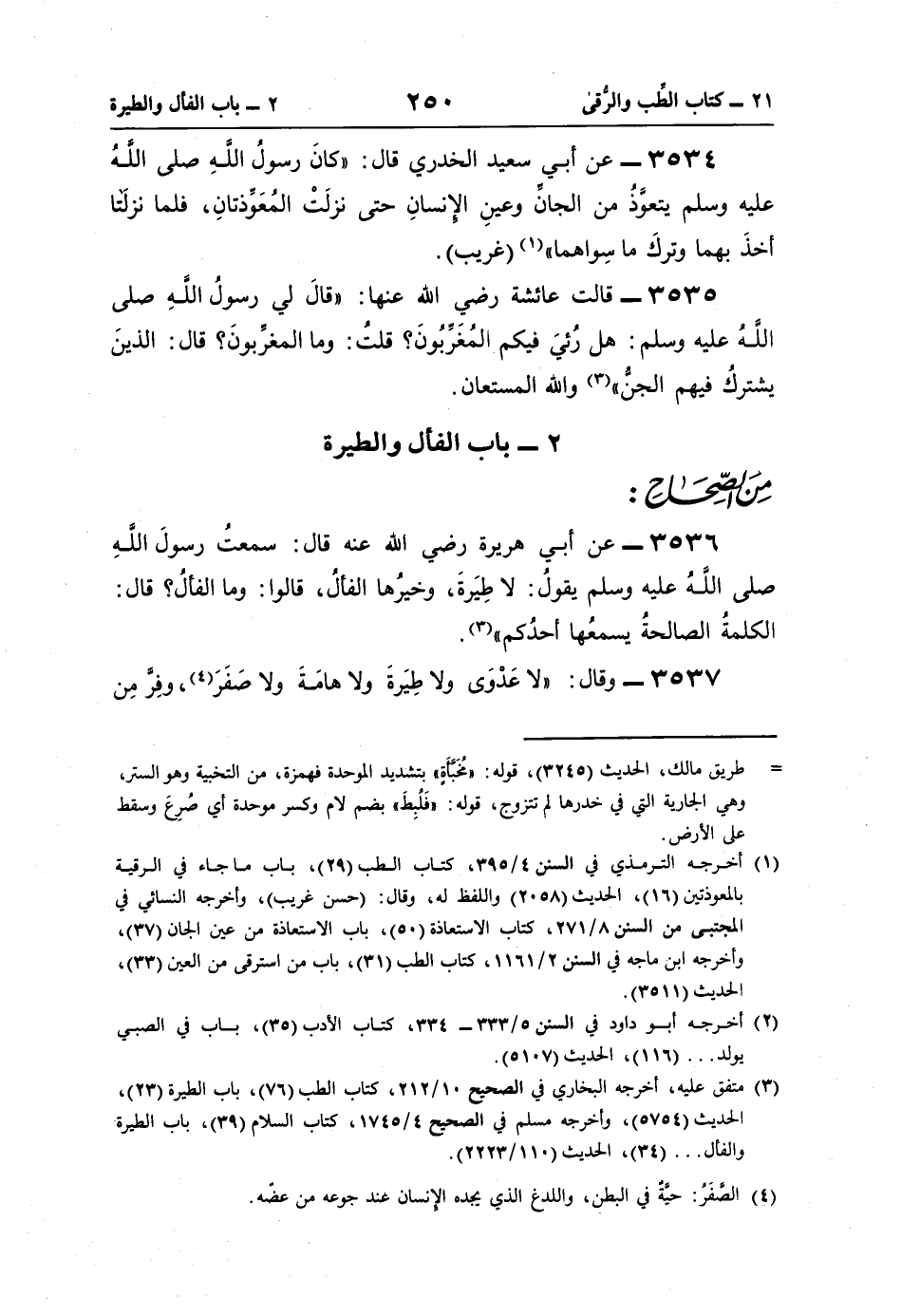 (¬3) متفق عليه، أخرجه البخاري في الصحيح 10/ 212، كتاب الطب (76)، باب الطيرة (23)، الحديث (5754)، وأخرجه مسلم في الصحيح 4/ 1745، كتاب السلام (39)، باب الطيرة والفأل. . . (34)، الحديث (110/ 2223).