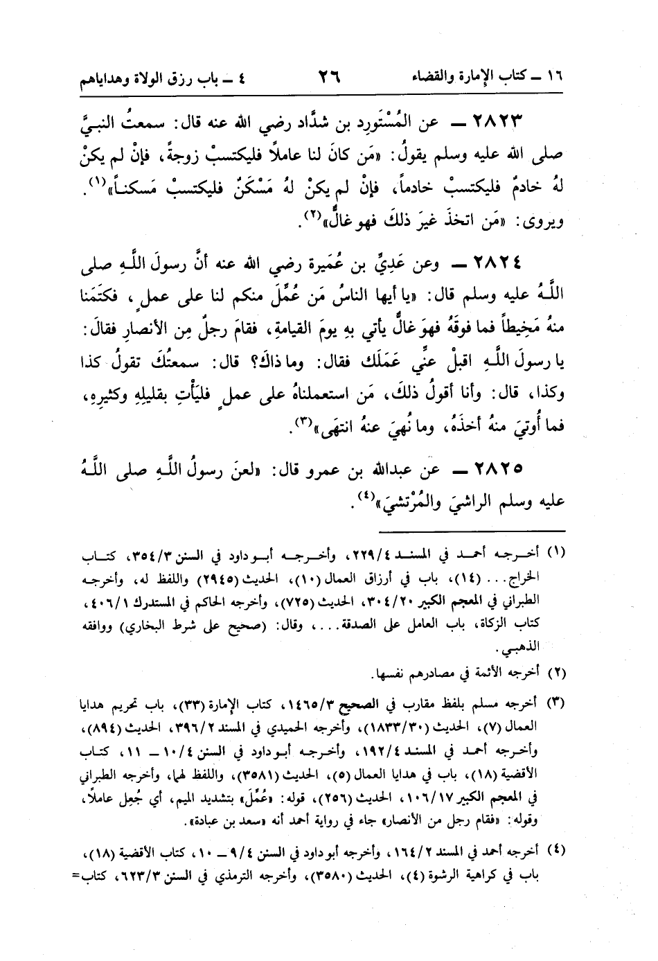 2825 - عن عبد اللَّه بن عمرو قال: "لعنَ رسولُ اللَّهِ صلى اللَّهُ عليه وسلم الراشيَ والمُرْتشيَ" (¬4).